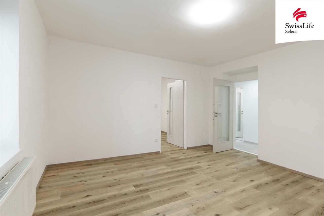 Interiér je po částečné rekonstrukci a je připraven k okamžitému nastěhování, zároveň ale poskytuje prostor pro vlastní úpravy.