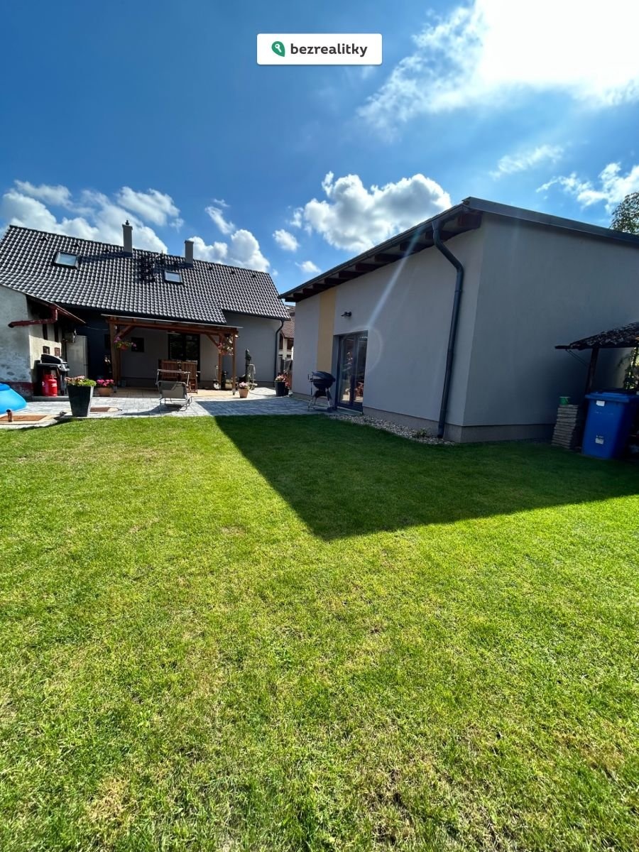 Na zahradě se nachází také praktické úložné prostory, vlastní studna a sklep.