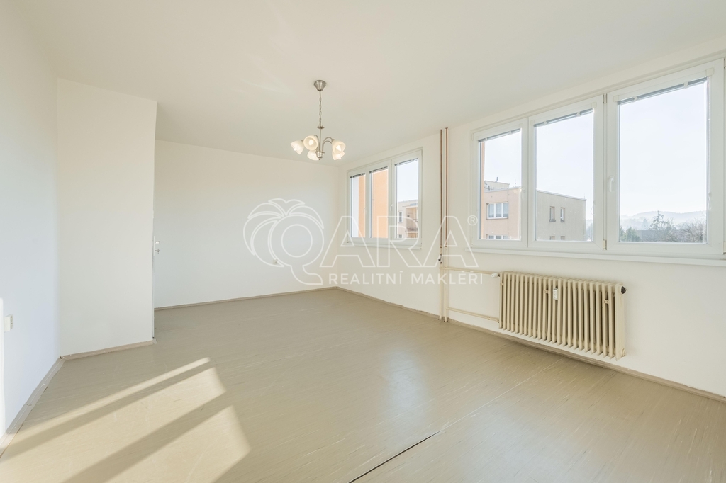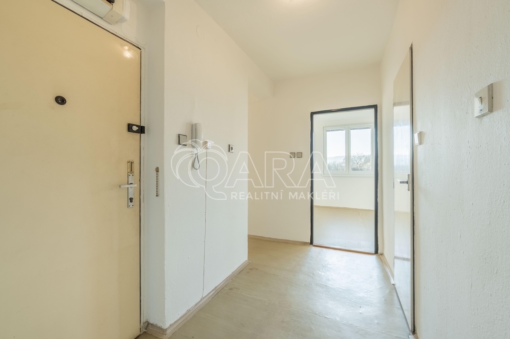 Byt o celkové výměře 73 m² (vnitřní plocha 65,25 m², lodžie 6,55 m²) je vyřešen velmi prakticky a tvoří jej: obývací pokoj, kuchyně, 2x ložnice, předsíň, koupelna s vanou a samostatné WC. Jedna z ložnic disponuje vstupem na lodžii, která je orientována jako většina oken na západ; okno v kuchyni je na sever. Byt je v původním stavu a určen ke kompletní rekonstrukci. K bytu náleží sklepní kóje (1,2 m²) umístěná na patře a dále sklepní kóje v suterénu domu. Dům prošel v posledních letech částečnou revitalizací - venkovní plášť, plastová okna.