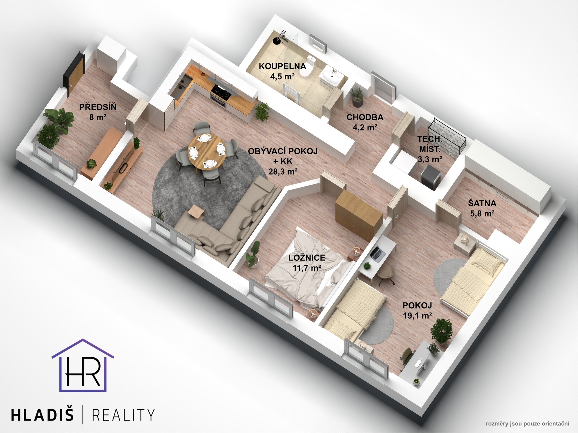 - dispozice 3+kk, užitná plocha 86 m², celková plocha 102 m², 1. podlaží - bezbariérový