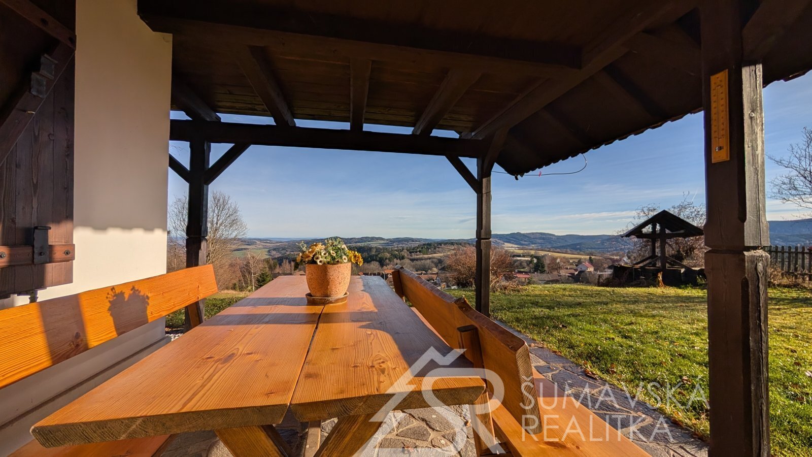 DŮM NA SAMOTĚ U LESA S FANTASTICKÝM PANORAMATICKÝM VÝHLEDEM, OSTRUŽNO NA ŠUMAVĚ.