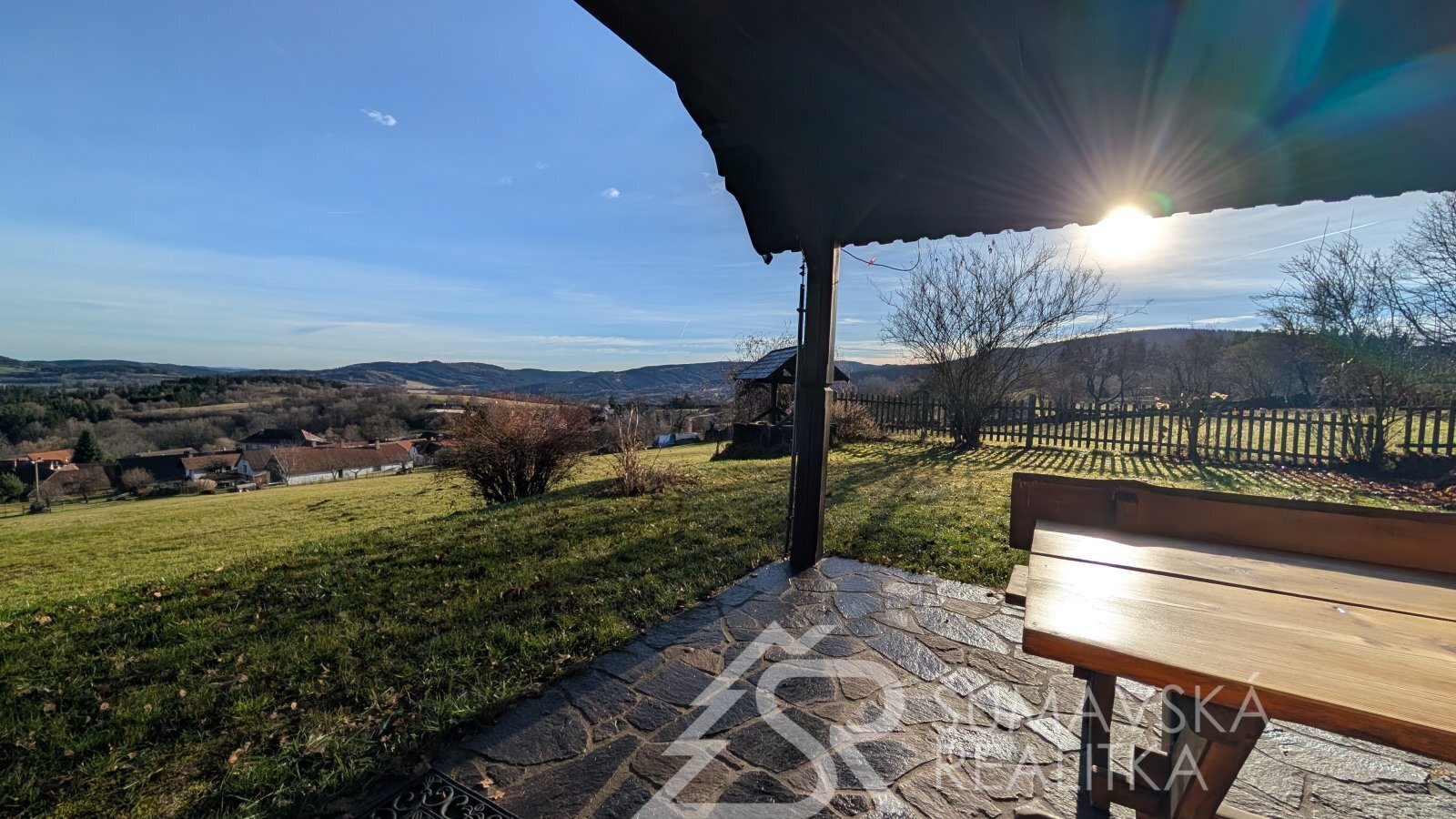 Popis domu: samostatně stojící dům, jednopodlažní, nepodsklepený s obytným podkrovím. Střecha sedlová krytá betonovou taškou Bramac. Velice příjemná je krytá jihovýchodní terasa s dechberoucím výhledem. V přízemí se ze zádveří vstupuje do spodní koupelny, samostatného WC a samozřejmě do obývajícího pokoje spojeného s kuchyní a jídelnou (71 m2). Po dřevěném schodišti vystoupáme do patra, kde se nachází tři samostatné ložnice, druhá koupelna, šatna a krytý balkon. Technická místnost s kotlem, bojlerem a pračkou je v přízemí. Vedle domu je ještě samostatná kolna/dílna. Okna jsou dřevěná, krytá okenicemi.