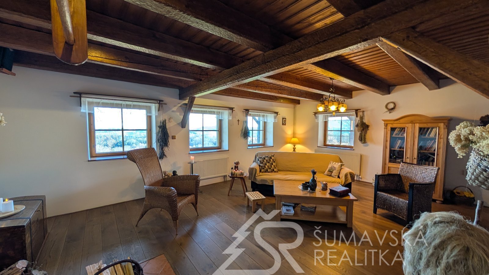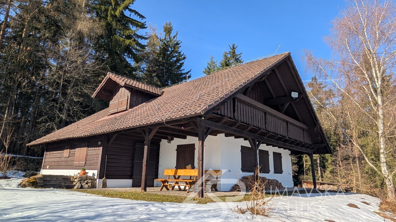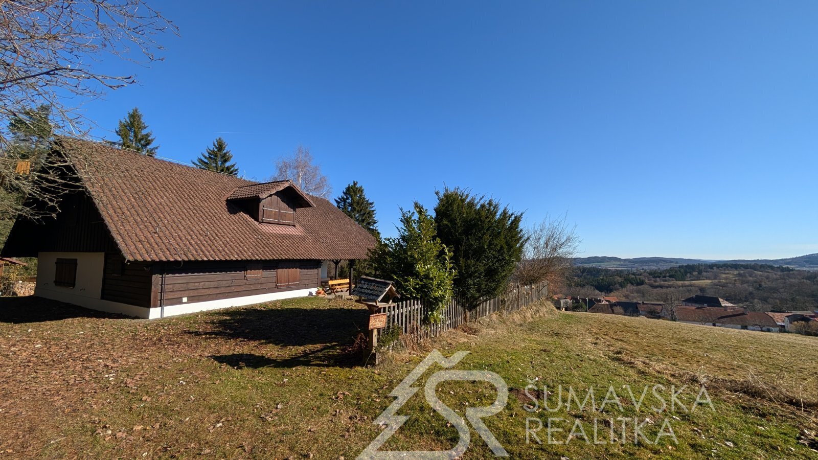 DŮM NA SAMOTĚ U LESA S FANTASTICKÝM PANORAMATICKÝM VÝHLEDEM, OSTRUŽNO NA ŠUMAVĚ. Často jezdím na kole po Šumavě a nedávno jsem zabloudil do lokality pod hradem Kašperk, kde jsem narazil na samotu pod lesem s naprosto nádherným výhledem. V úžasu jsem si doslova sedl na zadek a kochal se dalekými výhledy až na Brdy. „Tak to je luxusní místo!“ říkal jsem si tehdy a náhoda tomu chtěla, že se pak v naší kanceláři objevil sám pan majitel a dal nám tento šperk mezi nemovitostmi prodat.