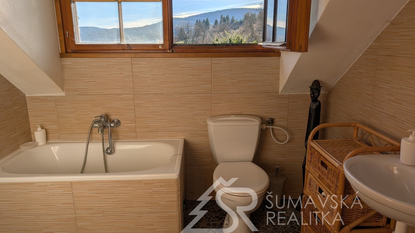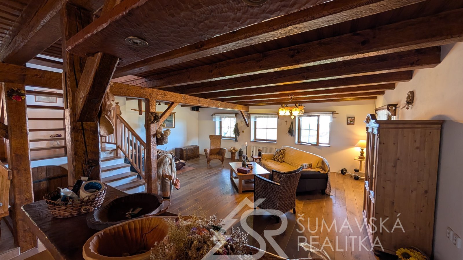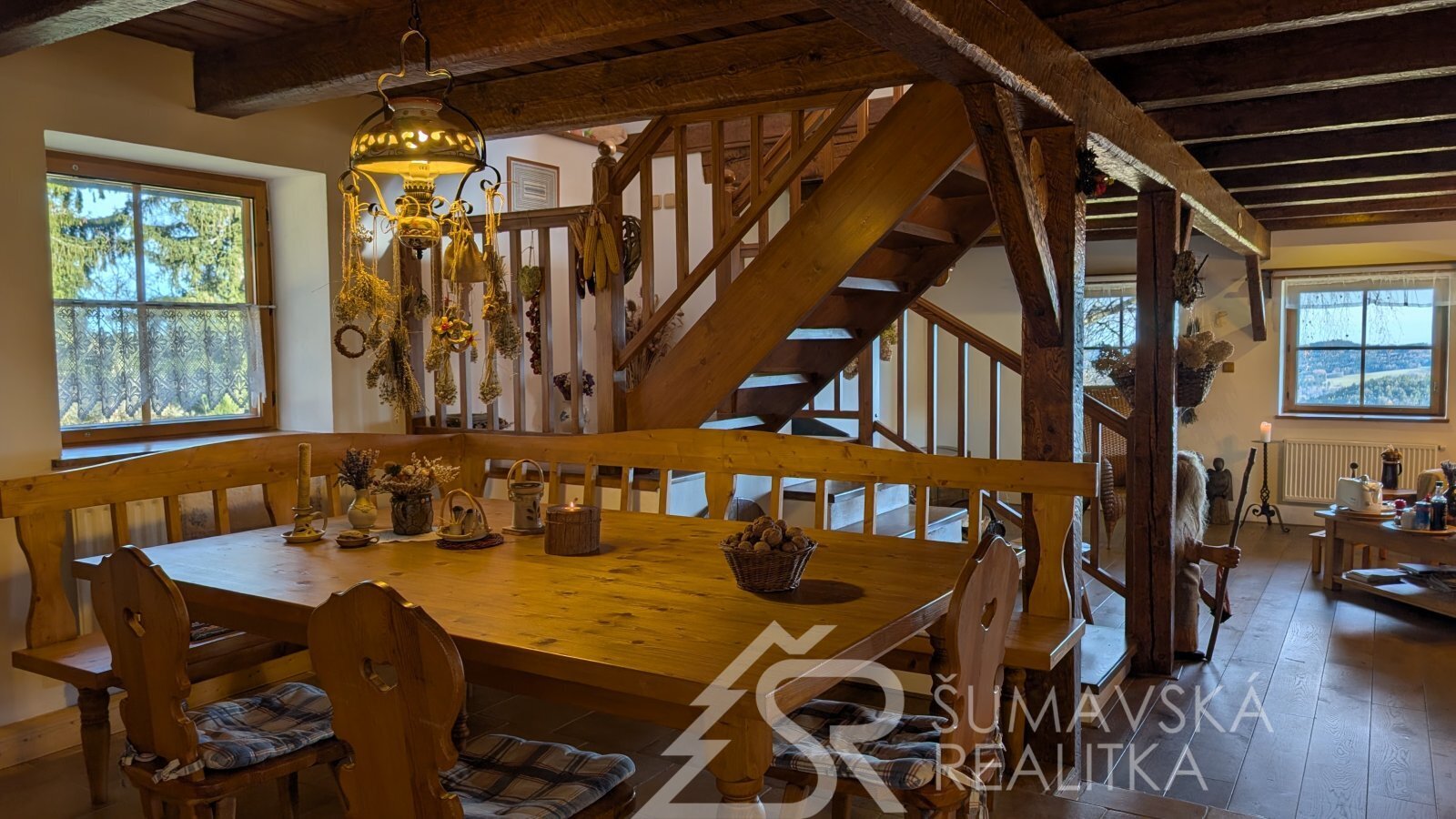 DŮM NA SAMOTĚ U LESA S FANTASTICKÝM PANORAMATICKÝM VÝHLEDEM, OSTRUŽNO NA ŠUMAVĚ. Často jezdím na kole po Šumavě a nedávno jsem zabloudil do lokality pod hradem Kašperk, kde jsem narazil na samotu pod lesem s naprosto nádherným výhledem. V úžasu jsem si doslova sedl na zadek a kochal se dalekými výhledy až na Brdy. „Tak to je luxusní místo!“ říkal jsem si tehdy a náhoda tomu chtěla, že se pak v naší kanceláři objevil sám pan majitel a dal nám tento šperk mezi nemovitostmi prodat.