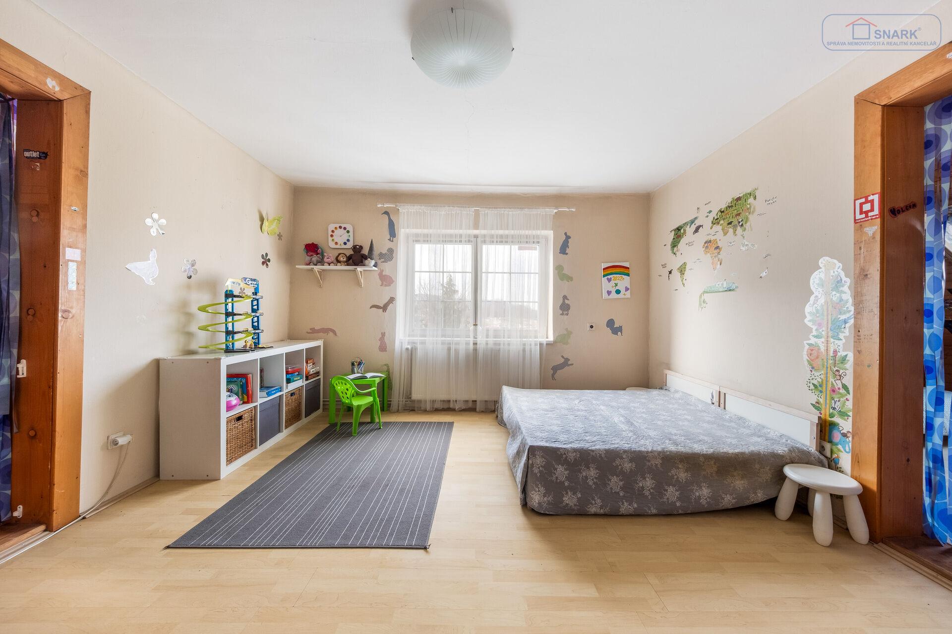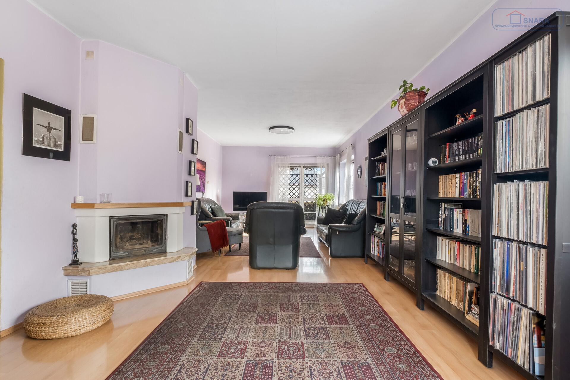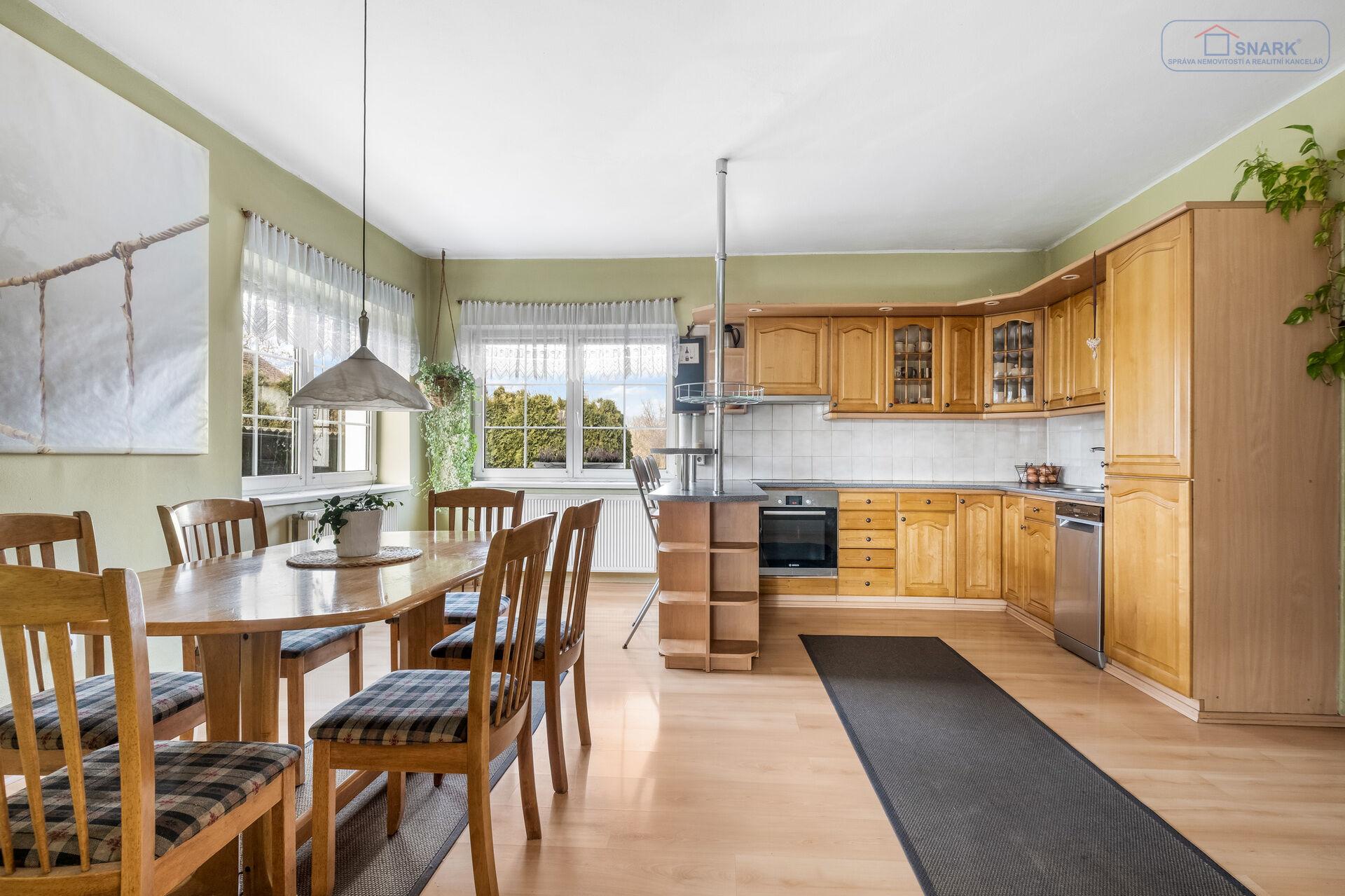 Patrový dům prošel v r. 2015 rekonstrukcí. Díky velkým oknům je interiér příjemně prosvětlený. Okna zároveň přirozeně propojují obytný prostor s rovinatou zahradou, kde se nachází bazén, prostorná terasa s výhledem na zámek a okolní krajinu, venkovní posezení s krbem a kryté parkovací stání pro dvě auta. Detailní dispozice domu je k dispozici v přiloženém půdorysu.