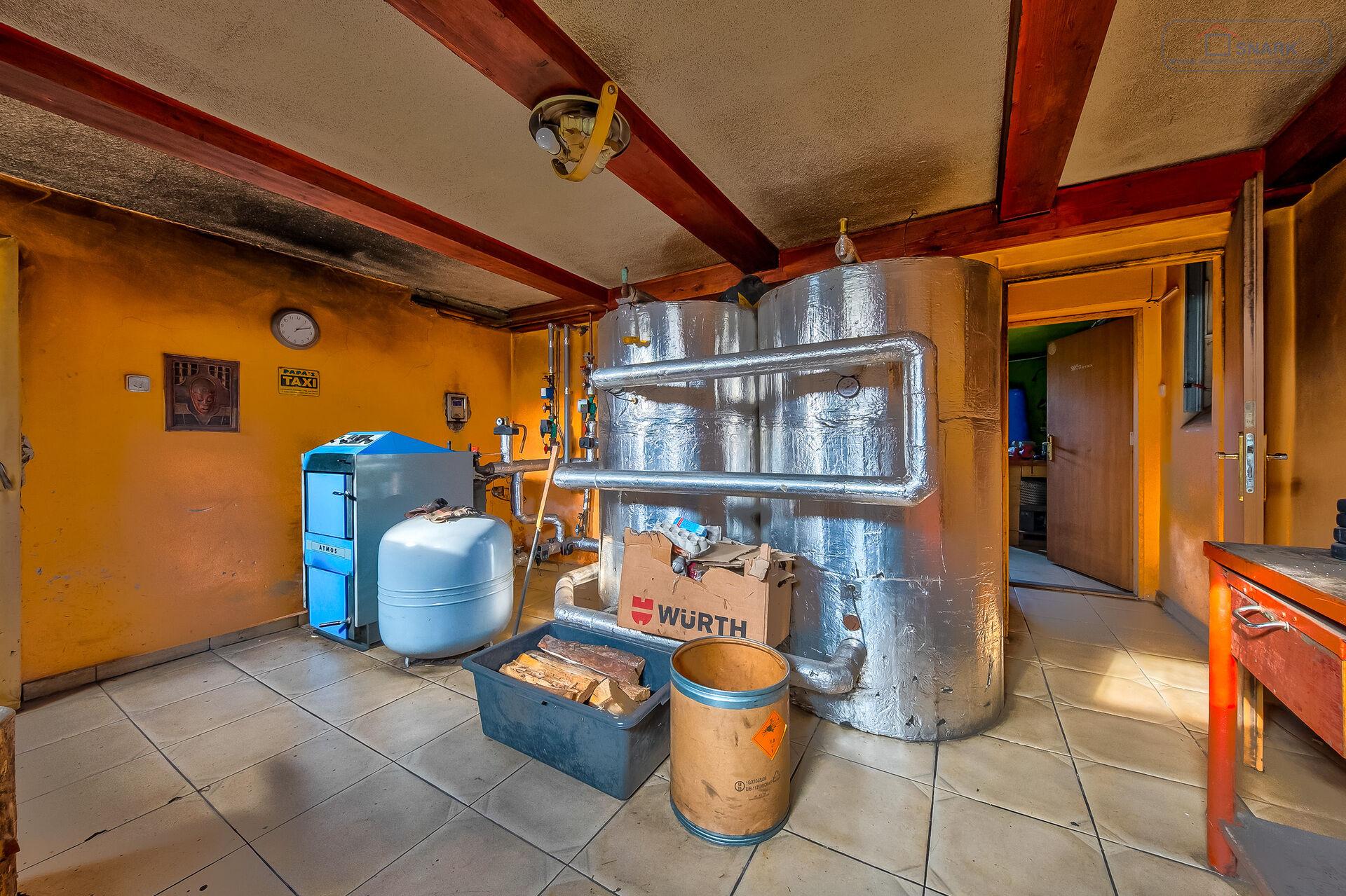 Dům nabízí také velmi praktické technické zázemí, které zahrnuje odhlučněné nahrávací studio, dílnu a kotelnu vybavenou kombinovaným kotlem na plyn a dřevo. Měsíční náklady na vytápění: plyn 310 Kč, dřevo 2.080 Kč. Elektřina 2.270 Kč. PENB v přípravě, údaj bude aktualizován.