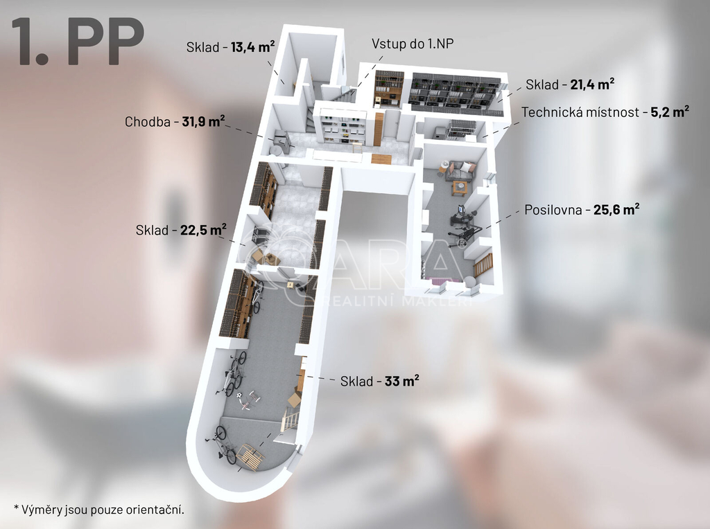 ✔ sklepní podlaží – technické zázemí a úložné prostory
