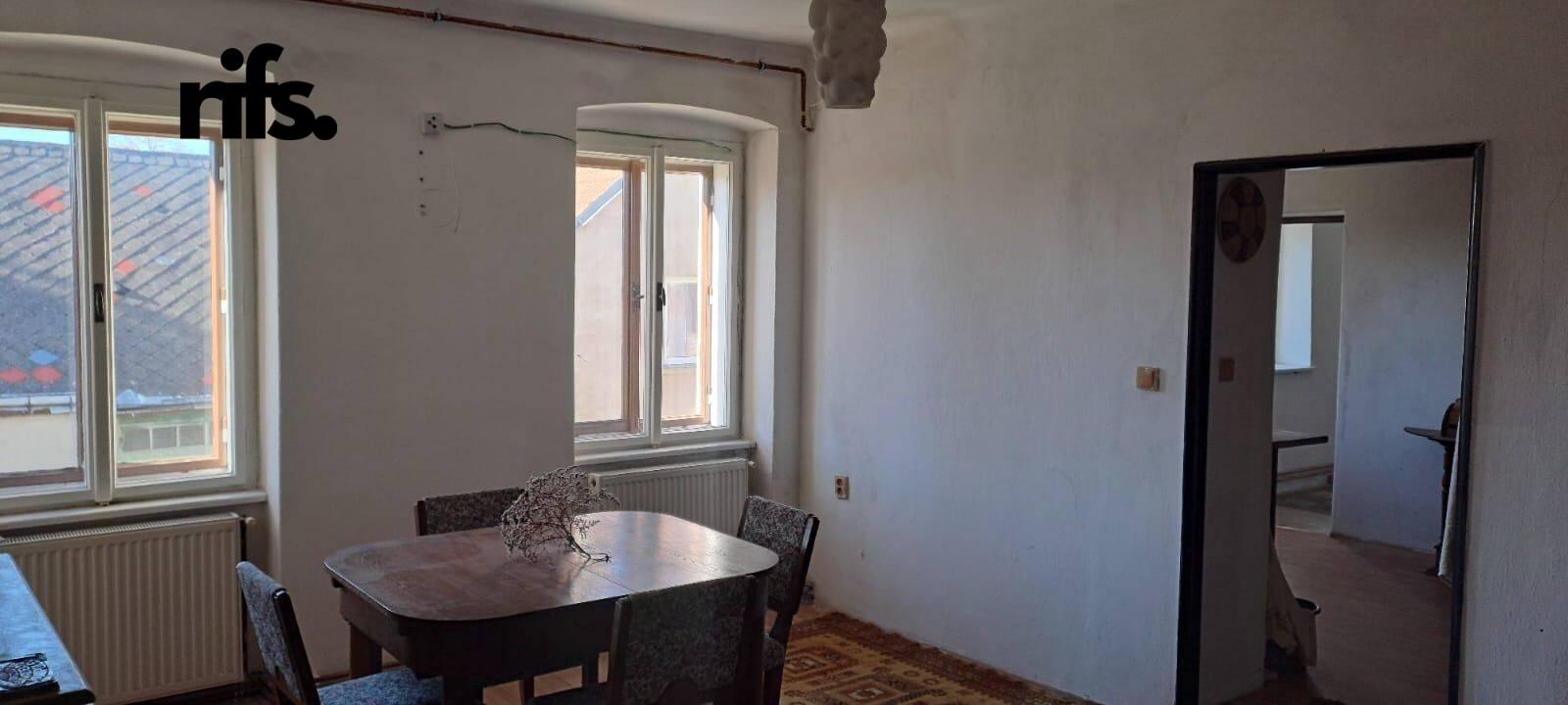 Nabízíme k prodeji historický byt v centru obce Nová Bystřice v těsné blízkosti náměstí, ulice na Na můstku. Jedná se o část patrového domu, kde je vymezena samostatná bytová jednotka. Jednotka se skládá z místností v přízemí, dále k jednotce náleží celé 2. nadzemní podlaží a prostor půdy v celém půdorysu budovy, celková podlahová plocha činí 208,311 m2. V přízemí se nachází vstupní zádveří s chodbou, ke které přiléhá místnost s klenbami, v přízemí je i WC s umyvadlem. V patře jsou pak tři obytné pokoje, kuchyň, spíž, koupelna, komora. V domě je kompletně nové ústřední vytápění s novým plynovým kotlem a je zrekonstruovaná koupelna. V domě je funkční vodovodní i elektrická přípojka. Prostorná půda o podlahové ploše 83,72 m2 nabízí možnost půdní vestavby. Dům je dlouhodobě neobývaný. Dům zadní stranou příléhá k zachovalému fragmentu městské hradby, původního středověkého opevnění města. Fotografie interiéru pošleme po předchozí dohodě. V případě zájmu o prohlídku nás neváhejte kontaktovat.