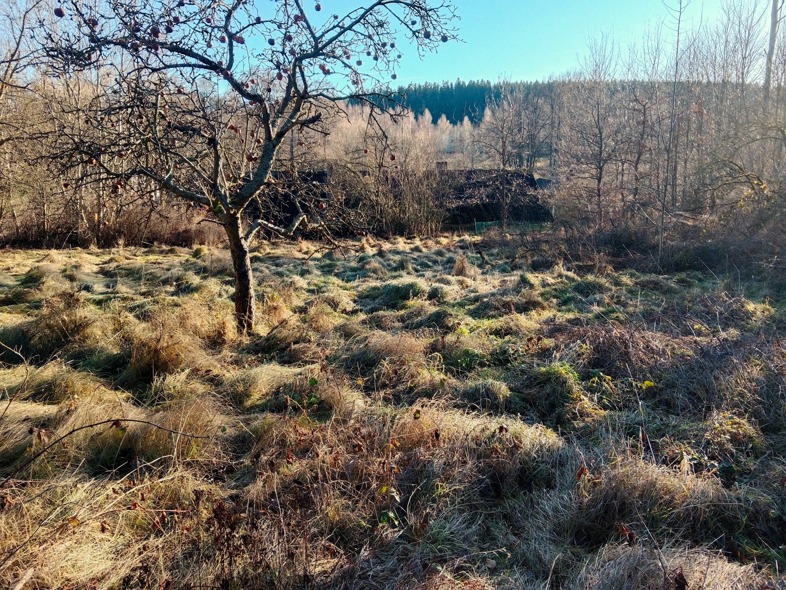 Na pozemku se nachází cca 20 plně vzrostlých smrků a dle územního plánu je určen k výstavbě rodinného bydlení.