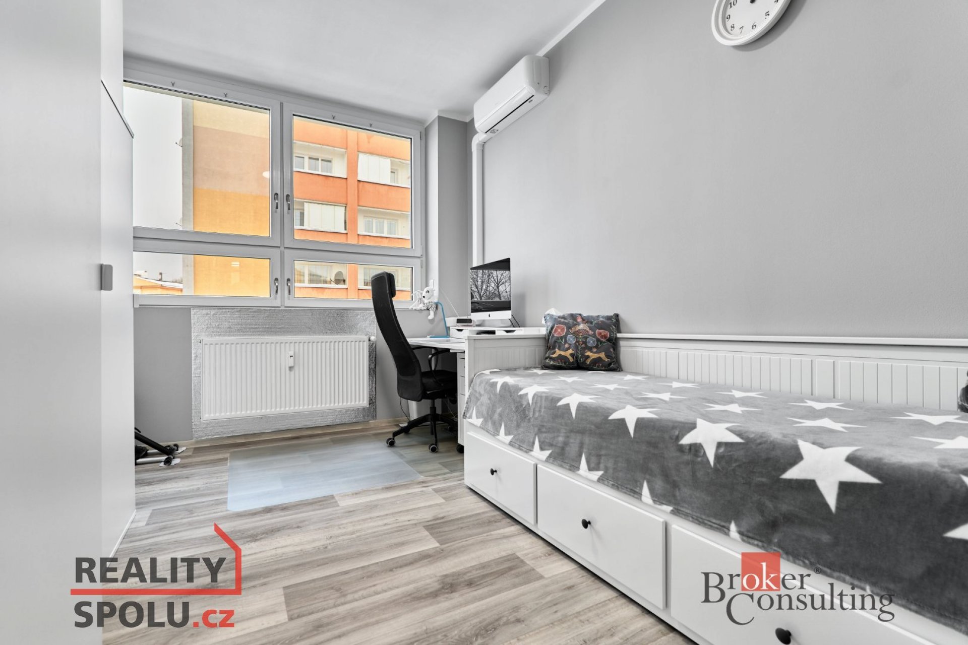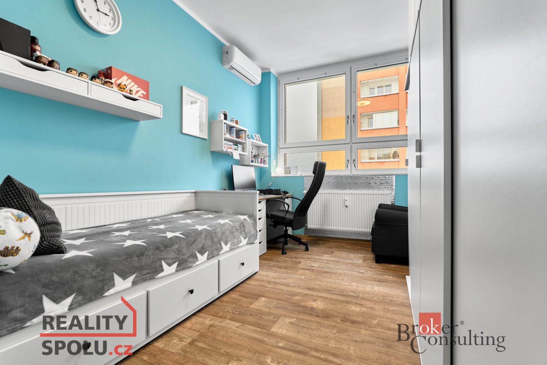 Byt disponuje dvěma samostatnými pokoji, které v současnosti sloužily jako dětské pokoje – oba zůstávají kompletně vybavené. Další místnost je řešena jako šatna na míru, což výrazně zvyšuje komfort bydlení.