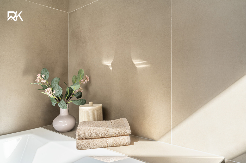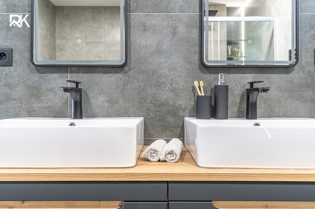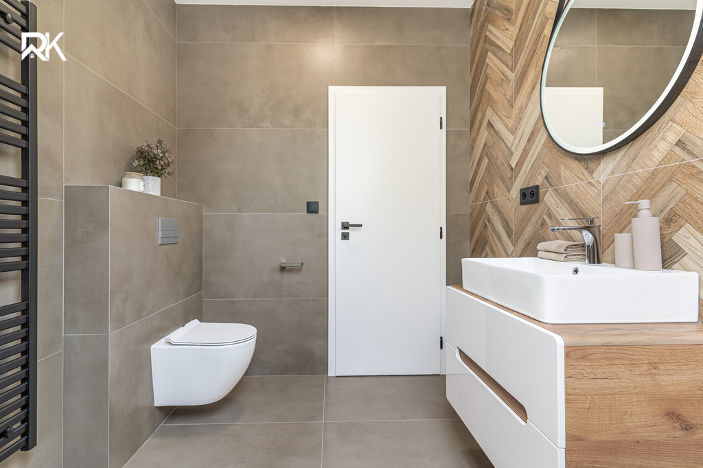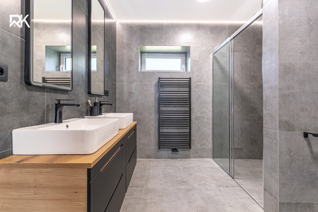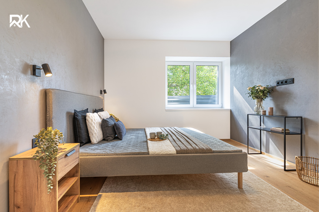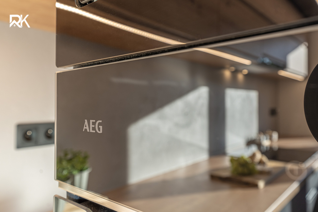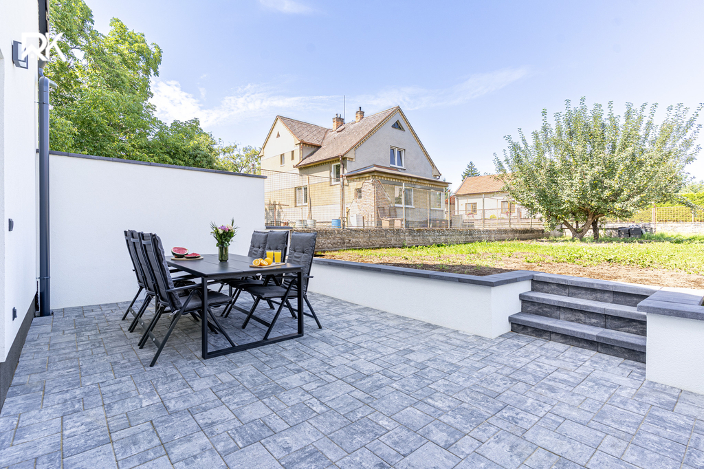 Dvě koupelny s WC, prostorný obývací pokoj s výstupem na terasu, tři ložnice a moderní kuchyňská linka AEG. Vše nové, včetně rozvodů elektřiny, vody i kanalizace.