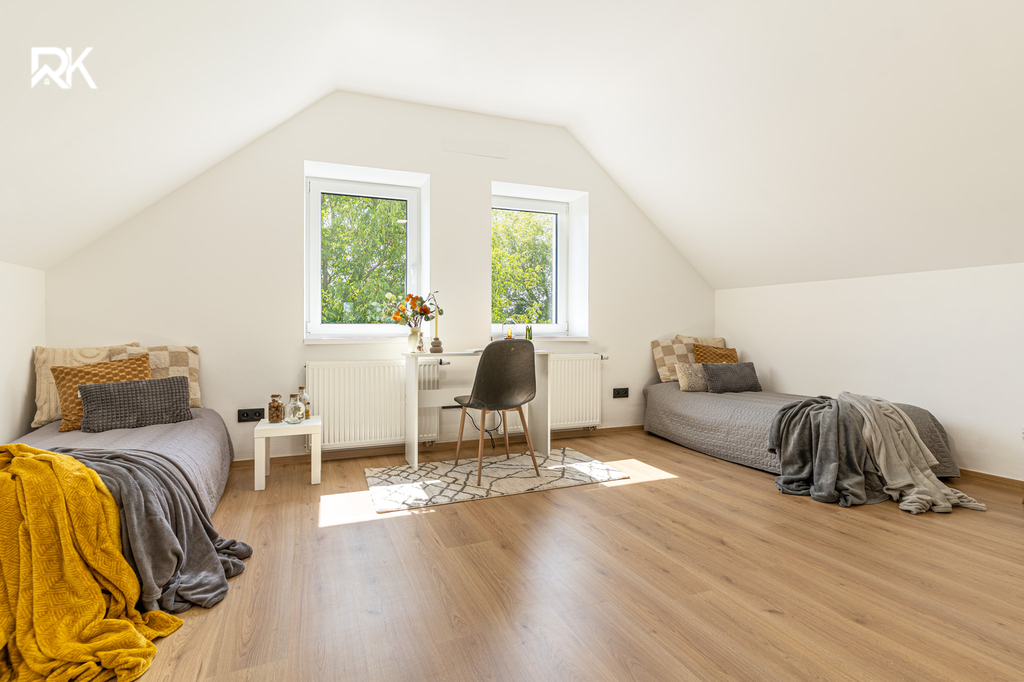 Dispozice 4+kk s užitnou plochou 140,4 m² je ideální pro komfortní bydlení. Pozemek o velikosti 568 m² má dva samostatné přístupy – z hlavní ulice k domu a ze zadní části zahrady, což umožňuje pohodlné vybudování garáže, zahradního domku nebo další stavby bez omezení vstupu na pozemek.