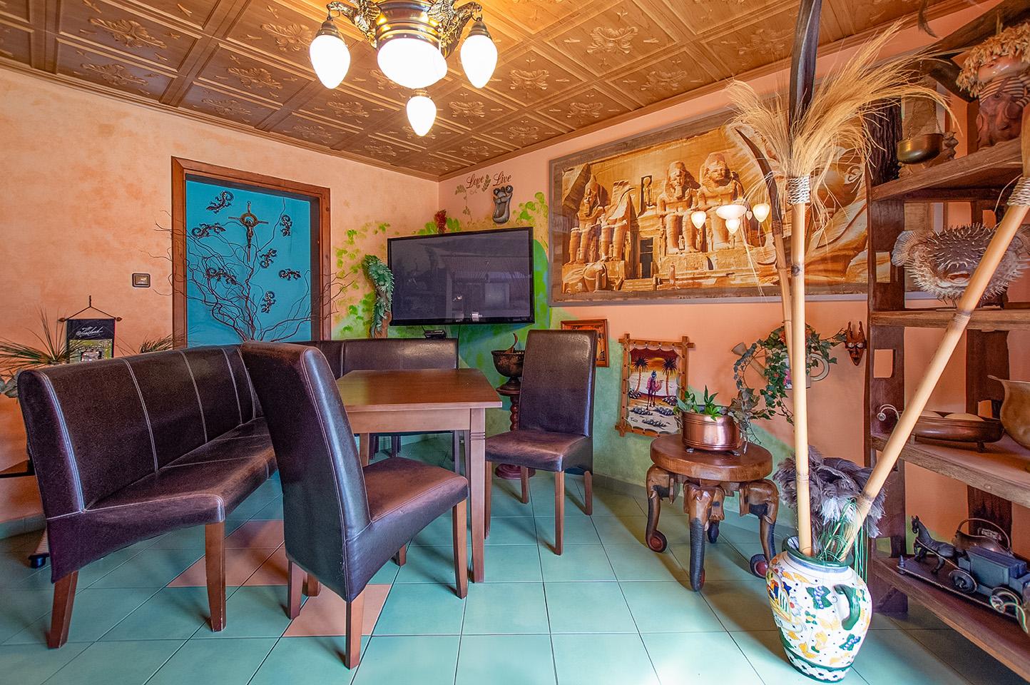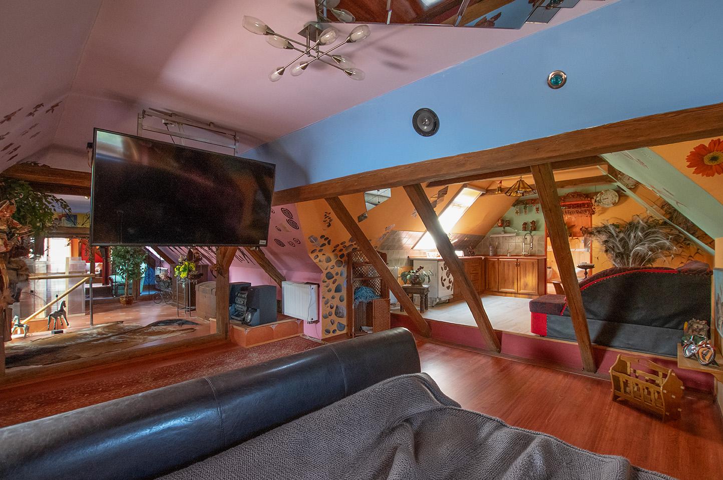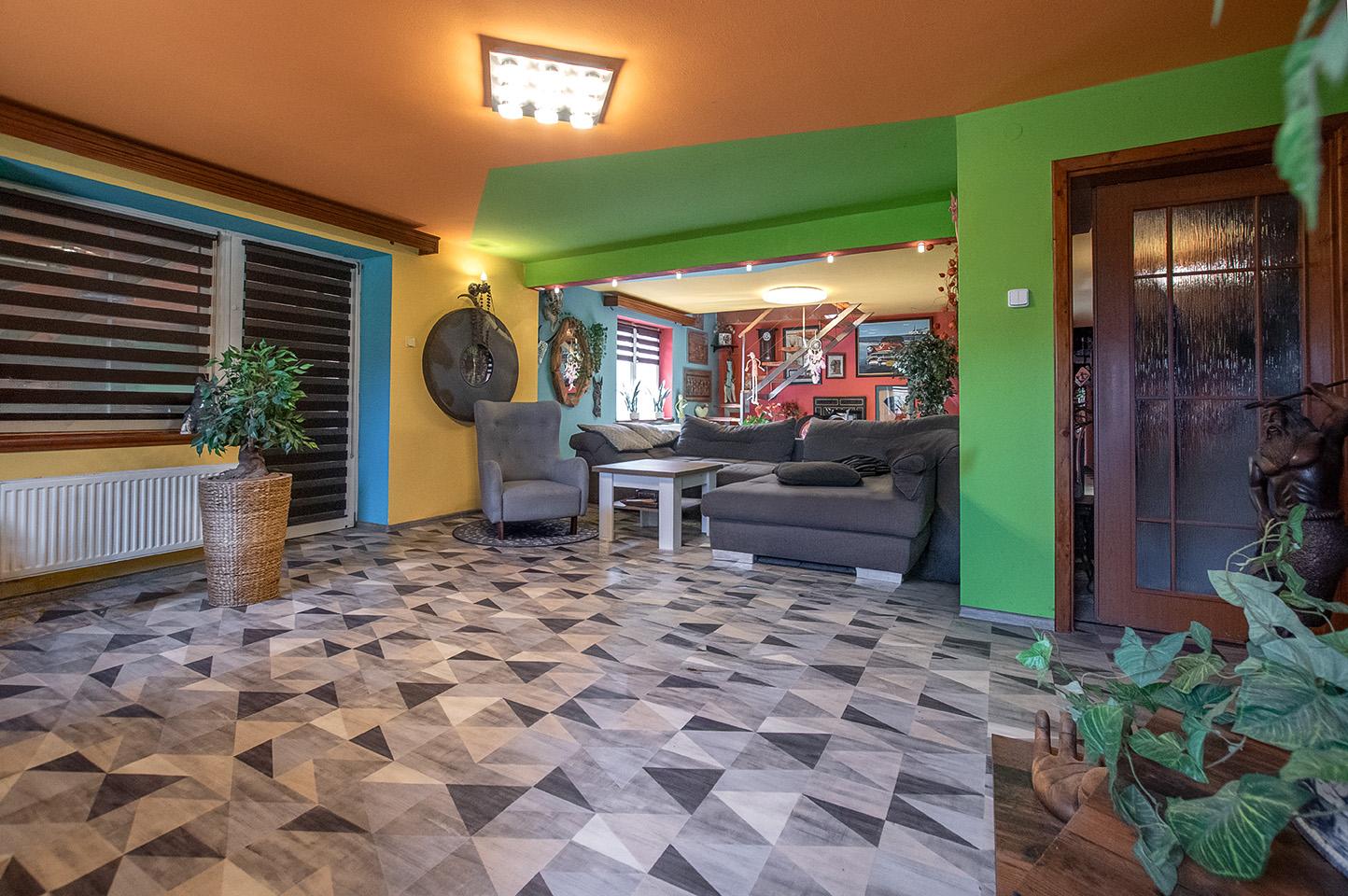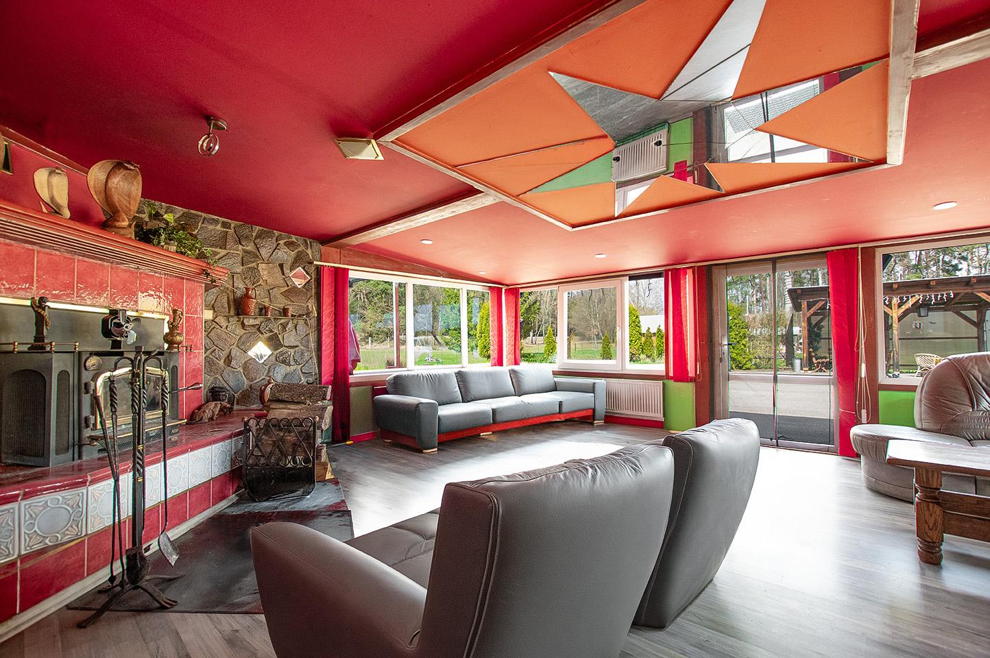 Dominantou objektu je velkorysý společenský prostor s barem, který lze využít pro soukromé akce, firemní setkání, retreaty nebo jako zázemí pro ubytovací či rekreační projekt. Na tento prostor navazuje obytná část a jednotlivé apartmány, které nabízejí potenciál pro krátkodobé i dlouhodobé ubytování.