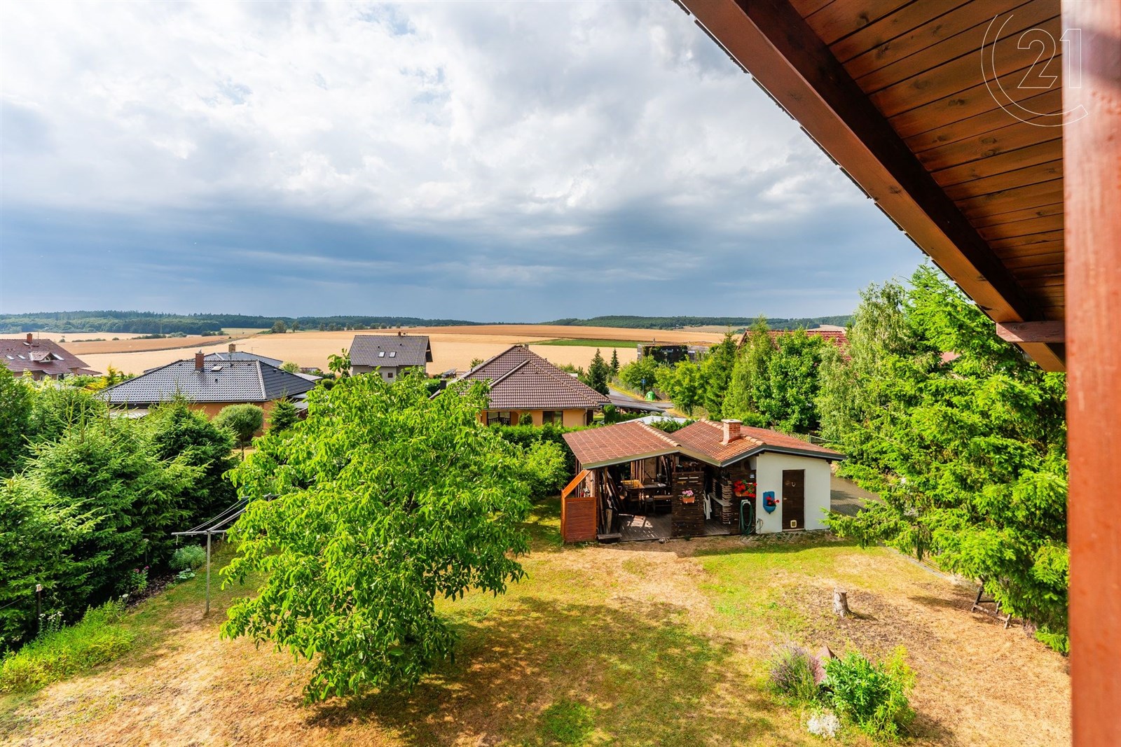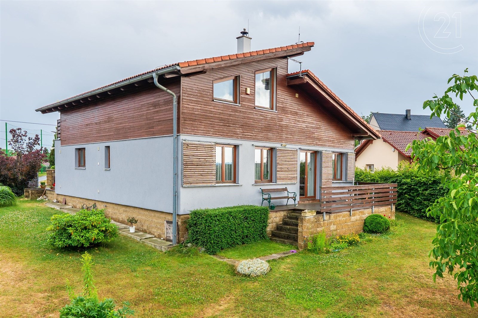 Moderně koncipovaný dům z roku 2006 je rozložen do dvou nadzemních podlaží, přičemž obytná část nabízí dostatek prostoru včetně balkonu a soukromí pro každého člena rodiny. Velmi užitečný je centrální vysavač včetně odtahu smetí u kuchyňské linky. Dominantou domu je terasa s dechberoucím výhledem, ideální pro odpočinek nebo rodinné posezení.