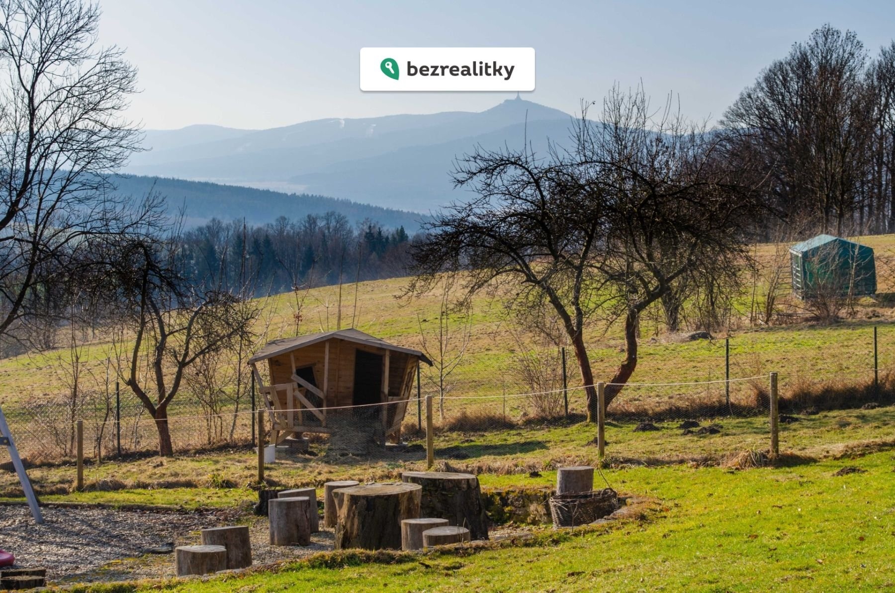 Spodní část pozemku zdobí staré vzrostlé stromy, které poskytují přirozený stín, soukromí a příjemné mikroklima. Zároveň nabízejí praktický benefit v podobě palivového dřeva do krbu či pro venkovní posezení u ohně. Kombinace jižního svahu, vody a zeleně dává místu jedinečnou atmosféru.