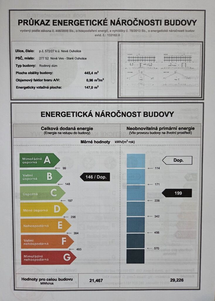Celková roční spotřeba elektřiny (topení, ohřev vody, vaření, svícení a běžný provoz) se za poslední 3 roky držela do 10 MWh, což odpovídá měsíční záloze cca 6.000 Kč.