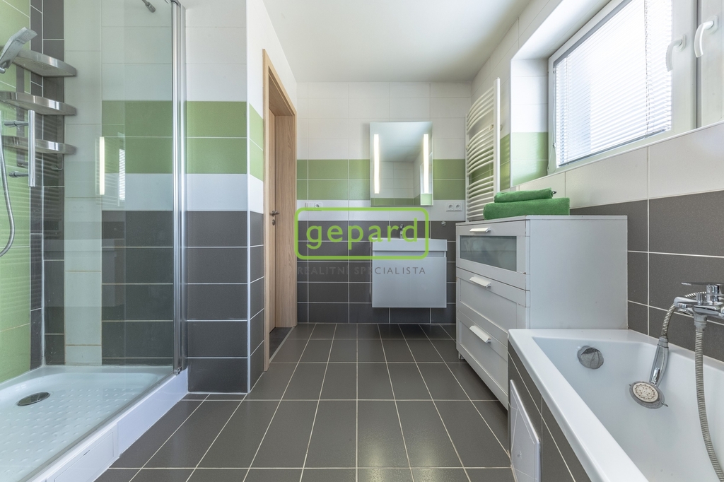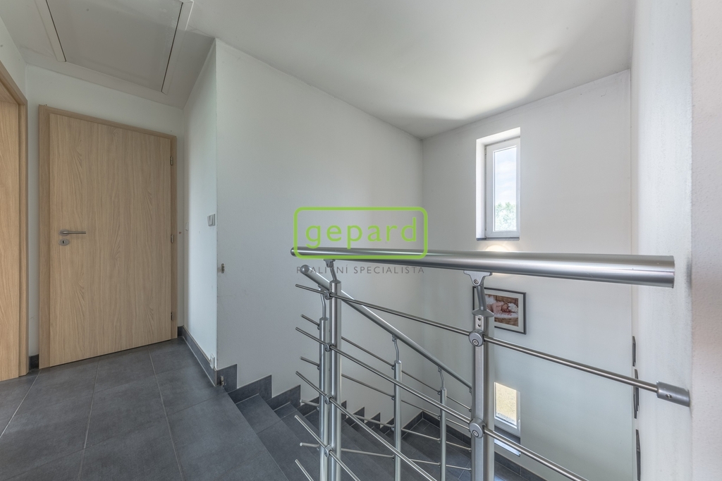 Dům postavený před 11 lety z broušených cihel HELUZ nabízí robustní obvodové zdi, precizní betonové stropy a střešní krytinu KM BETA. Plastová okna s dvojskly, dlažba, PVC, zámková dlažba kolem domu... všechno laděno v klidné barevné harmonii. Elektrické topení s podlahovkou v přízemí a radiátory v patře, v přízemí navíc prostor s přípravou pro krb pro rodinné večery. Zahrada je pečlivě udržovaná a nabízí příjemné soukromí. Lodžie v patře nabízí klidný výhled do zeleně.