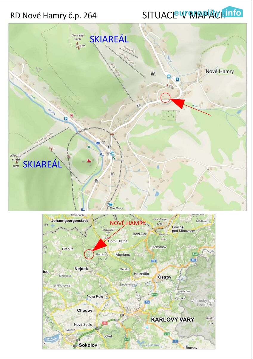 Rádi bychom vám představili rodinný dům, který nabízíme nově k prodeji. Jedná se o nemovitost představující mnoho možností využití. Třípodlažní, částečně podsklepená stavba s nádhernou zahradou a prostornou garáží (43 m2) se nachází v samém srdci Krušných hor, v malebném lyžařském středisku Nové Hamry. Dům prošel v minulosti téměř kompletní rekonstrukcí. Je zateplen, odizolován, byly vyměněny veškeré rozvody a díky novým technologiím je energeticky velmi nenáročný. Disponuje vlastními solárními panely Solar Divicon, (dvě akumulační nádrže) plynovým kotlem. Je napojen na veškeré sítě – veřejný vodovod, má vlastní ČOV, elektřinu 220+380 V, plyn. Tři obytná patra mohou sloužit jako vícegenerační rodinný dům, či bytový dům, nebo ke komerčním účelům jako apartmá. V přízemí byla započata přestavba, která nebyla dokončena a může být tak výzvou pro nového majitele, který si jej upraví dle svých představ. Další dvě patra, kam vede i další samostatný vchod ze zahrady, byla zrekonstruována a nabízejí tak veškerý komfort včetně vybavení. K domu přiléhá nádherná zahrada s okrasnými keři, vlastním jezírkem, pergolou a zahradní chatou, která byla s láskou opečovávaná a udržována v perfektním stavu. Celý pozemek je zcela oplocen, přičemž výhodou je vlastní příjezdová cesta v zadní části. Nepochybným nadstandardem je pak velmi prostorná garáž (43m2) s automatickými dveřmi přímo u domu. Obec Nové Hamry je známá nejen díky nedávno zprovozněnému lyžařskému středisku, ale zejména díky nádherné přírodě a mnoha turistickým cílům v blízkosti. Zároveň je zde základní občanská vybavenosti (pošta, obchod, restaurace, bazén, autobusová a vlaková doprava). Možno financovat hypotékou, kterou vám rádi zdarma vyřídíme v rámci našich služeb.