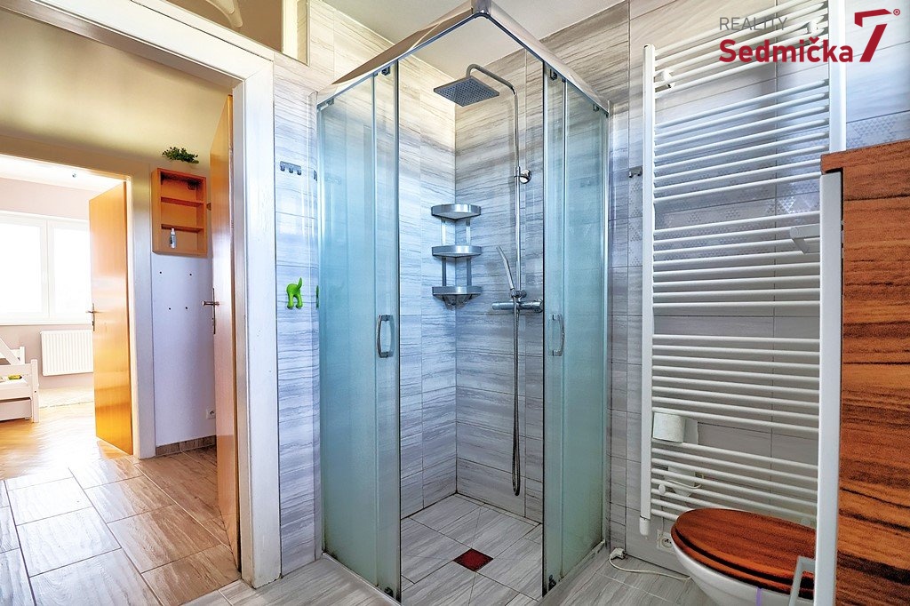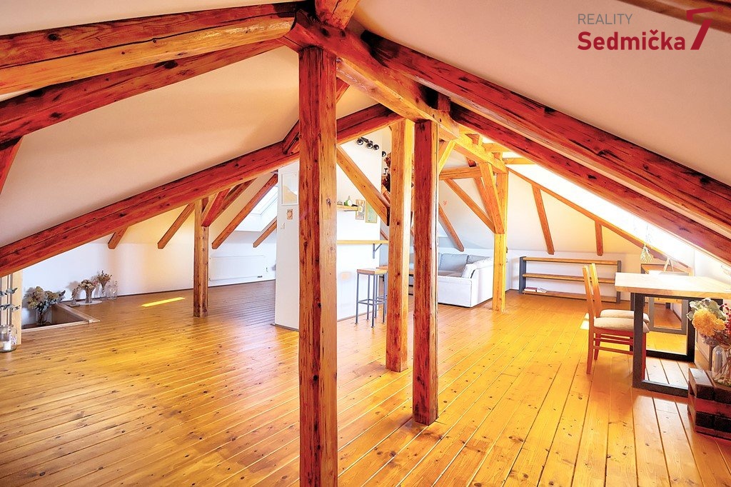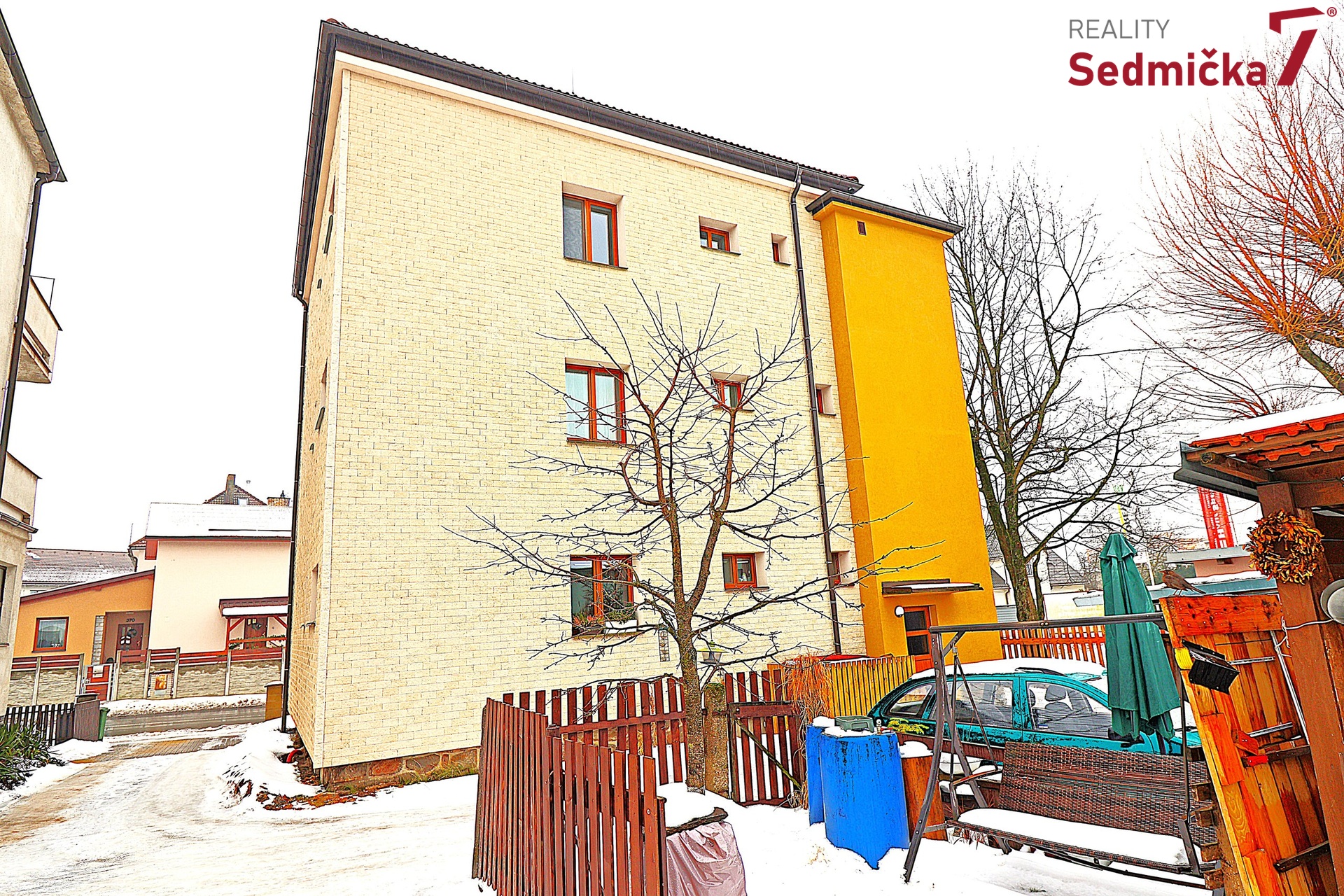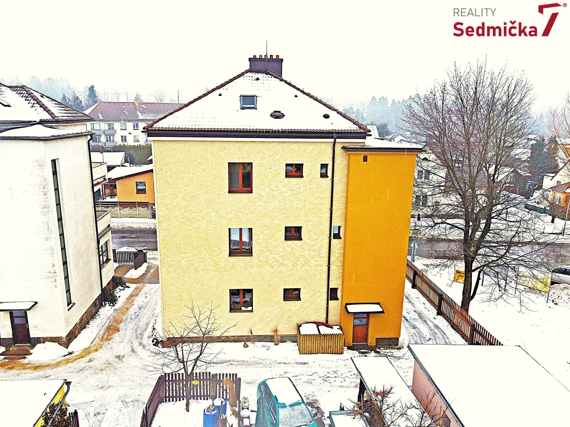 Byt je v 3. NP bytového domu se třemi byty. Má prostornou předsíň, kuchyň s jídelním koutem, dva pokoje, balkón, koupelnu s WC a v podkroví je velká jednoprostorová místnost.