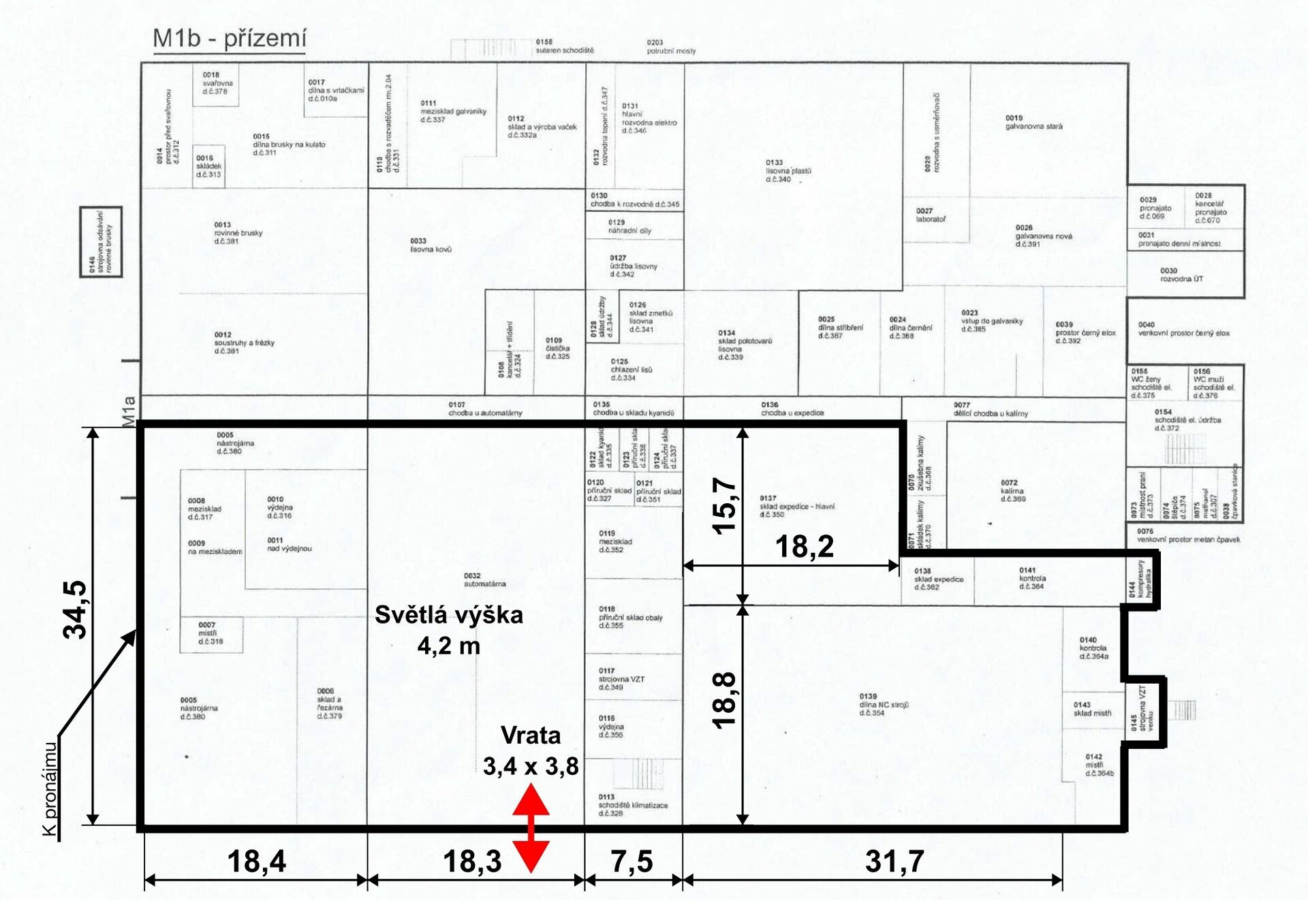 Možné výměry pronajatých skladových/výrobních ploch od cca 100 m2 až po celkem cca 3.200 m2.