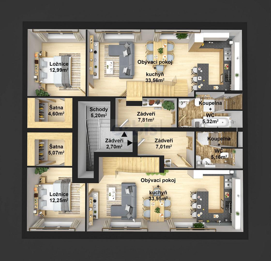 Novostavba mezonetového bytu 5+kk, 127,48 + park. stání, Nové Strašecí