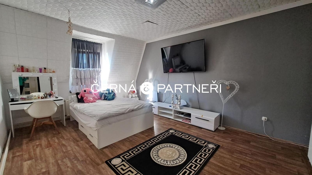 Součástí nemovitosti je také praktická skladovací místnost v přízemí a prostorná společná půda v horní části domu, která nabízí další potenciál pro rozšíření obytného prostoru.