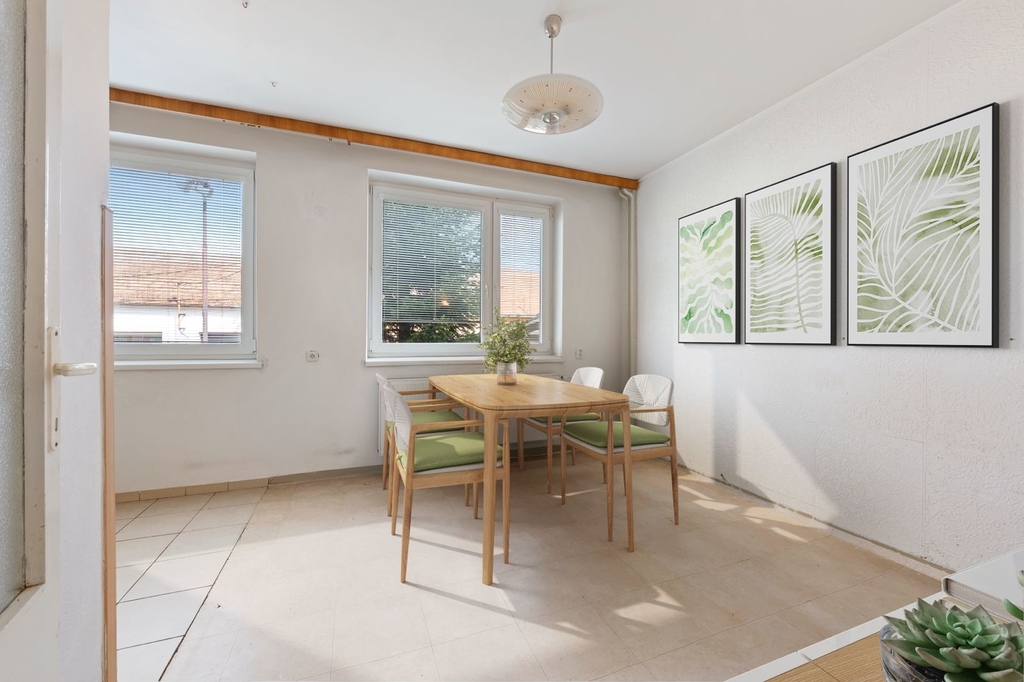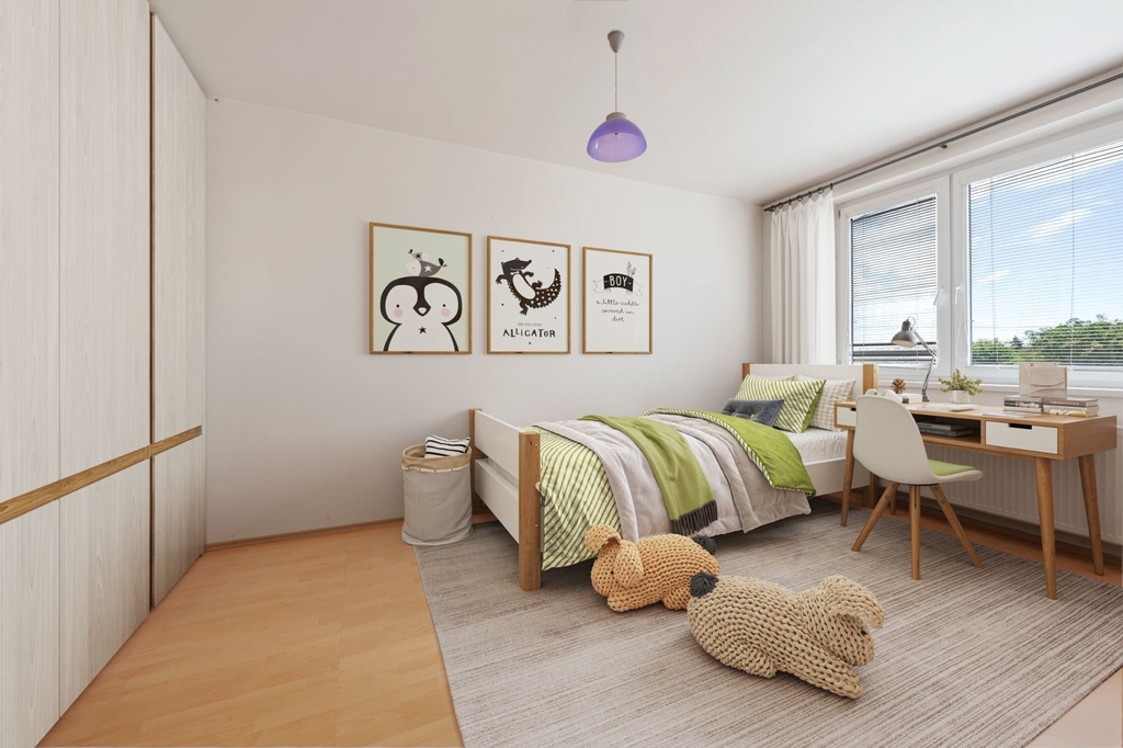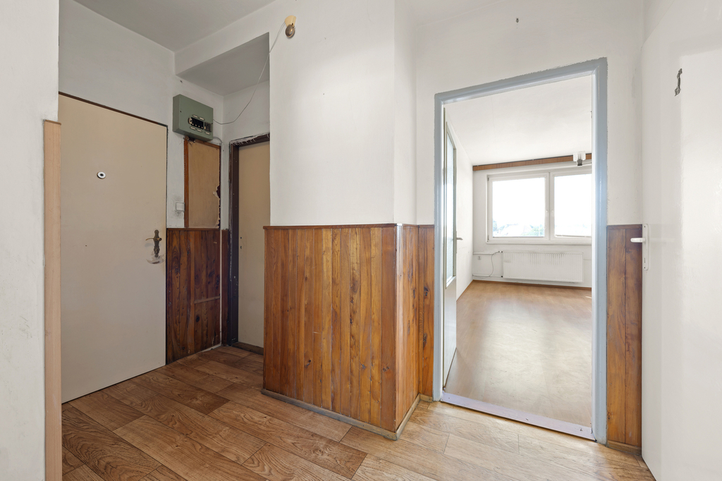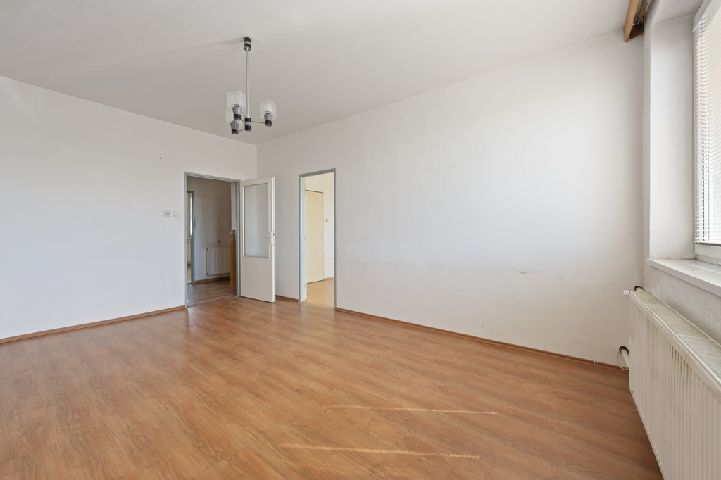Byt se nachází ve zvýšeném podlaží menšího bytového domu s pouhými čtyřmi bytovými jednotkami, což zaručuje maximální soukromí a klid, a nabízí praktickou dispozici 2+1 se samostatným vstupem do všech místností [jejichž rozloha je cca 15.5 a 17 m2 v případě ložnice a obývacího pokoje a cca 16 m2 v případě kuchyně s jídelnou] vč. koupelny s vanou a toalety. Sklepní prostor má cca 20 m2 a je v 1.PP bytového domu.