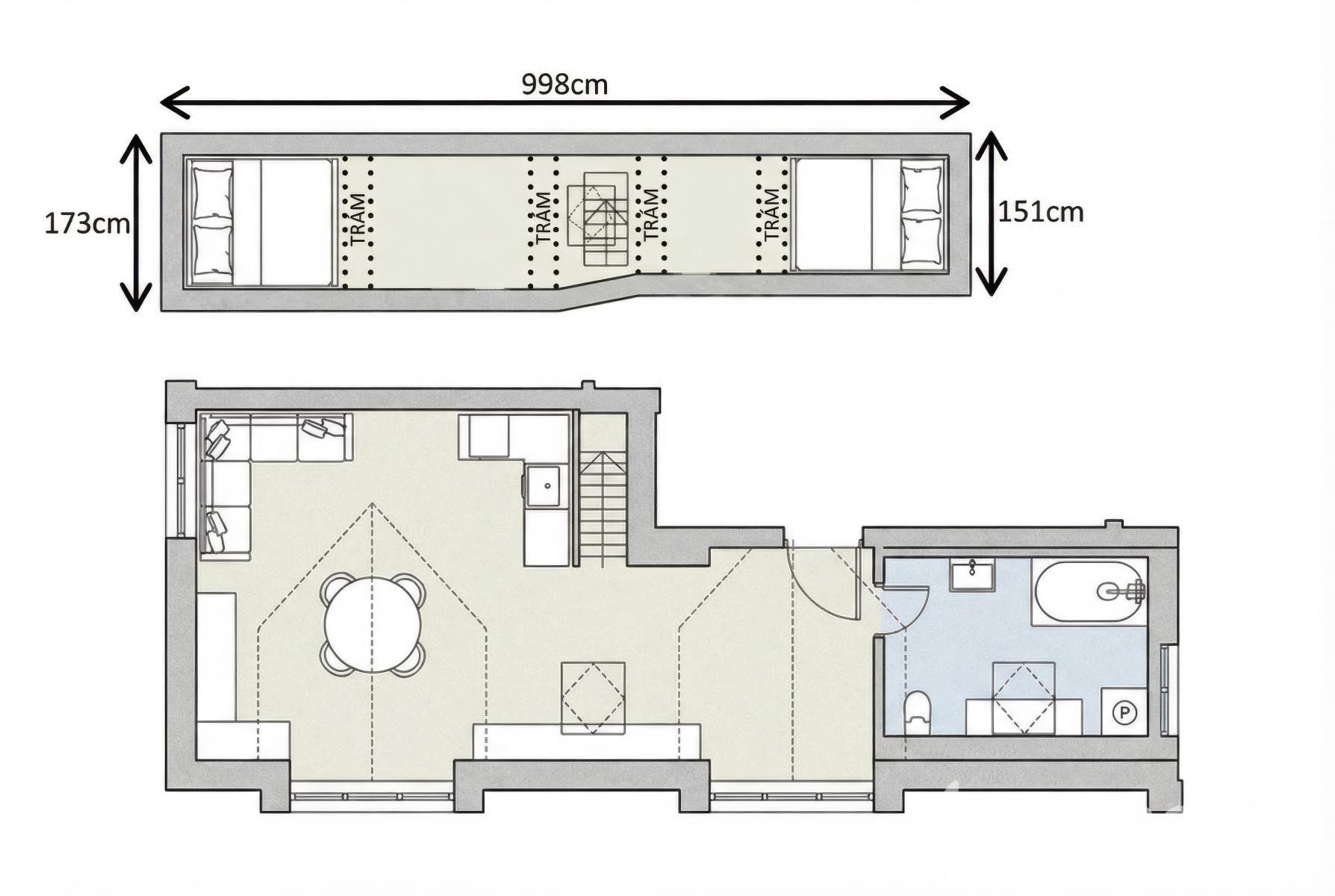 Dispozice: 1+kk, 45,3 m2 + obyvatelná půda 20,7 m2. Obyvatelnou půdu můžete využít jako ložnici, pracovnu nebo sklad.