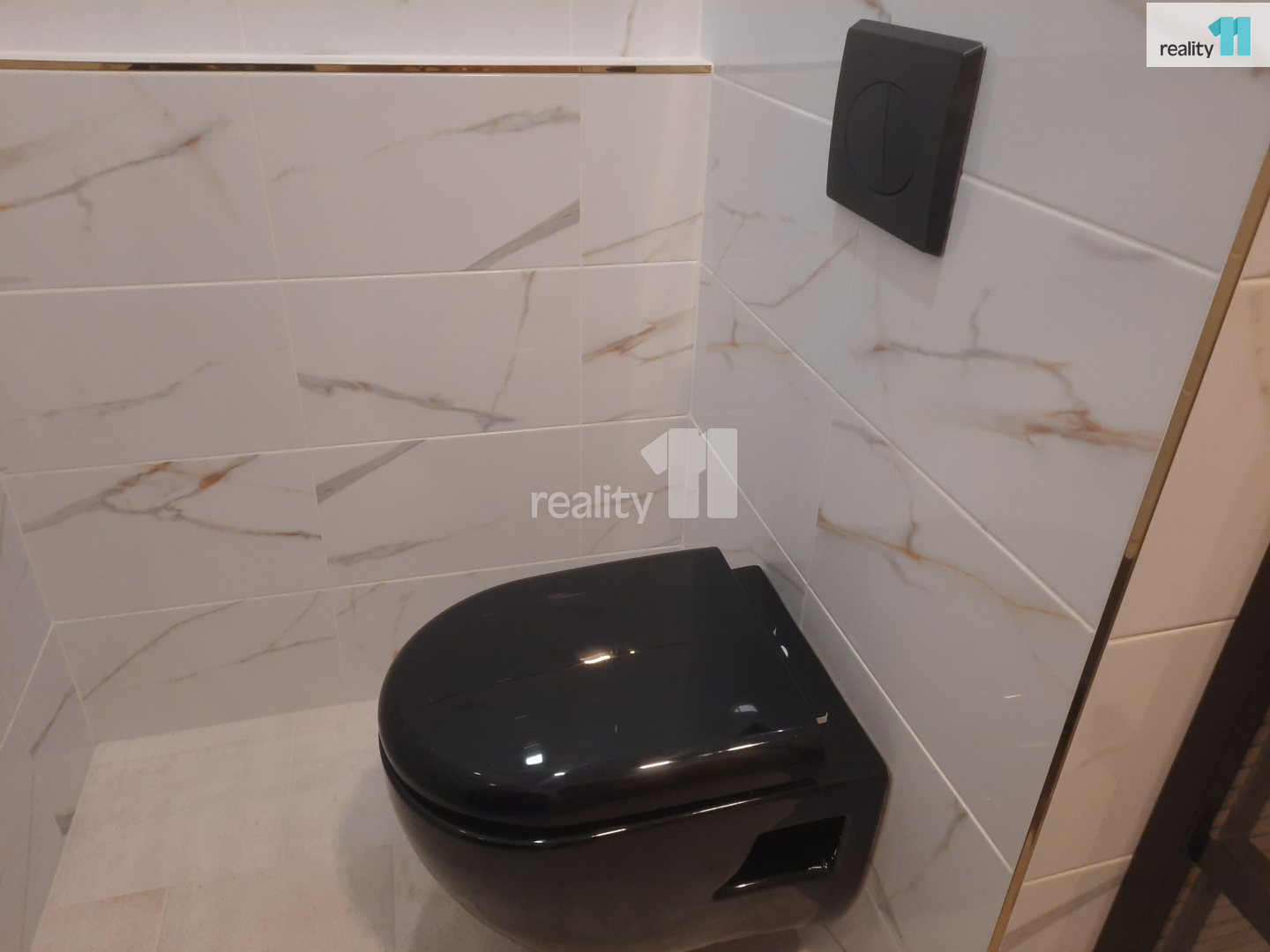 •dotykové vypínače, designové luxfery, černá toaleta, nová okna s trojsklem pro odhlučnění a úsporu energie, designová stěrka na stěnách se zlatým efektem