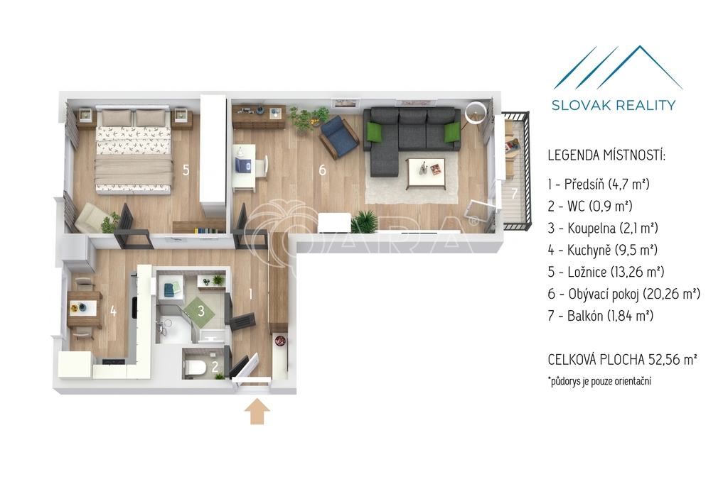 Dispozice bytu:2+1