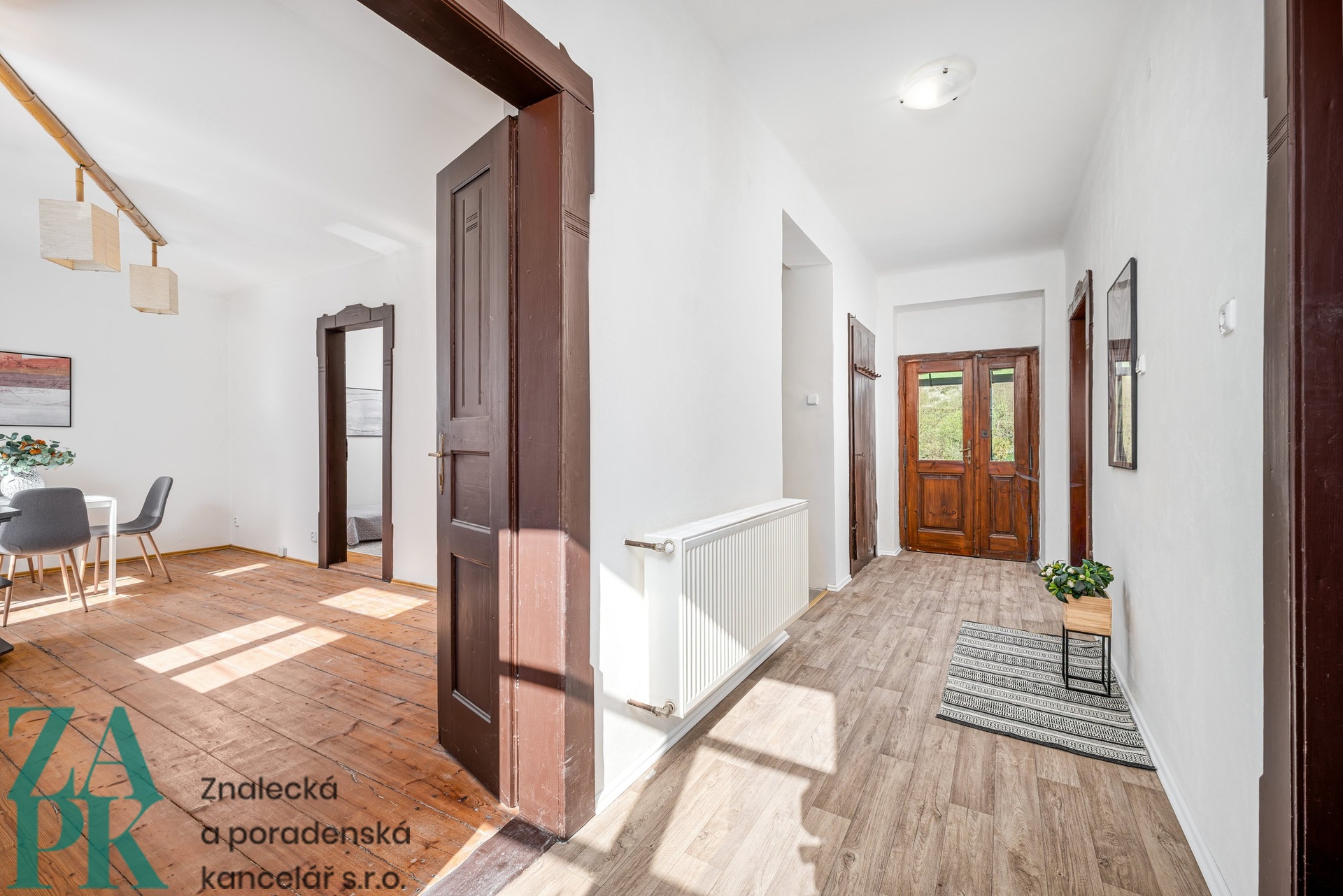 Dispozice domu je 6+2 a díky svému uspořádání nabízí široké možnosti využití. V přízemí se nachází kuchyň s jídelní částí, tři pokoje, koupelna se sprchovým koutem a toaletou, vstup do sklepa a přímý vstup na zahradu. V patře najdete obdobnou dispozici – kuchyň s jídelnou a tři pokoje, dále vstup na půdu a lodžii. Dům prošel renovací a je připraven k okamžitému užívání, zároveň však nabízí zajímavý potenciál pro další úpravy.
