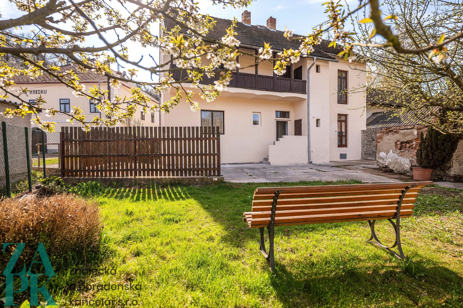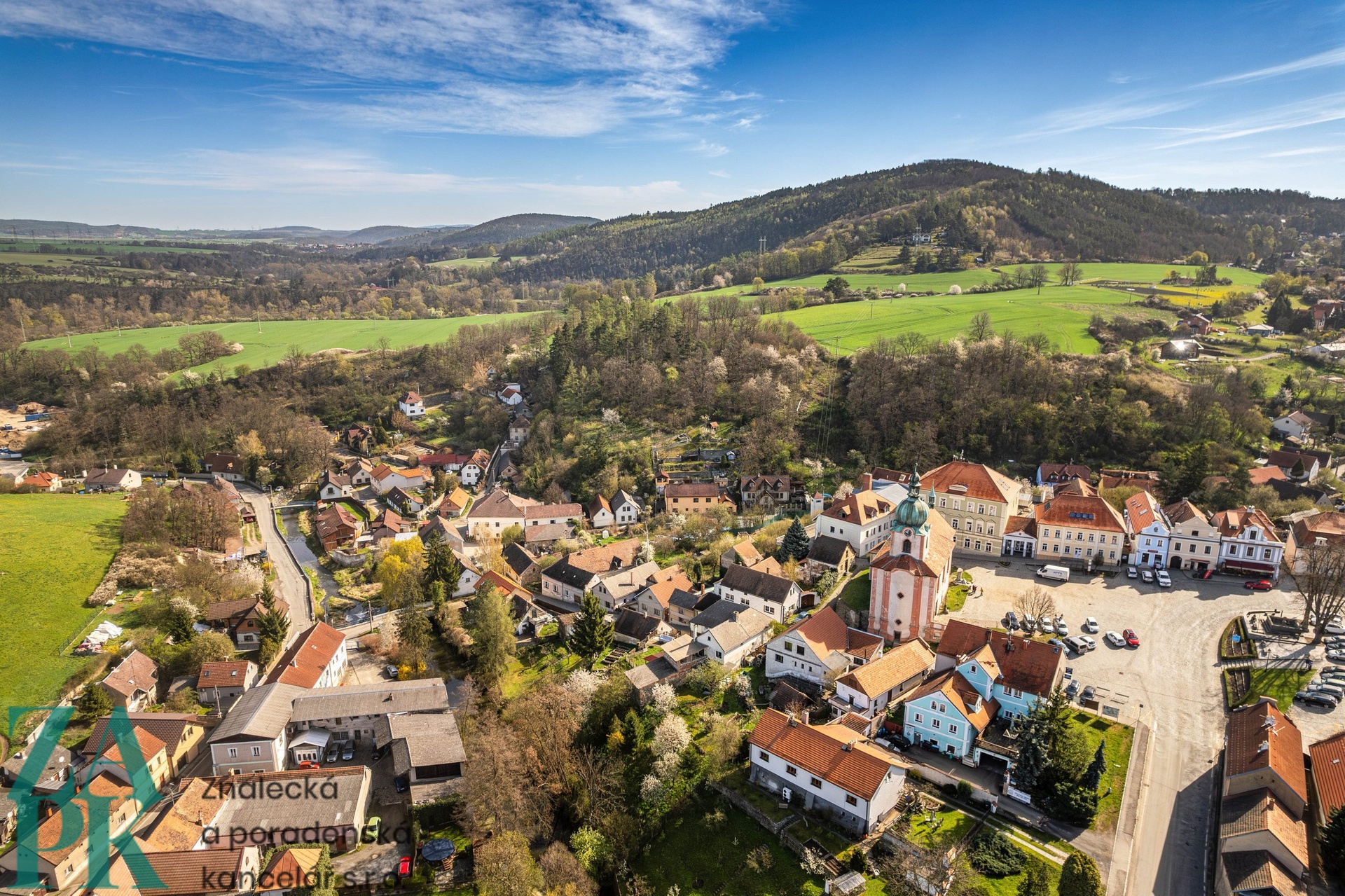 Nabízíme k prodeji velkorysý rodinný dům se zahradou v klidné části města Nový Knín, na adrese Tylovo náměstí 125, jen minutu chůze od centra obce.