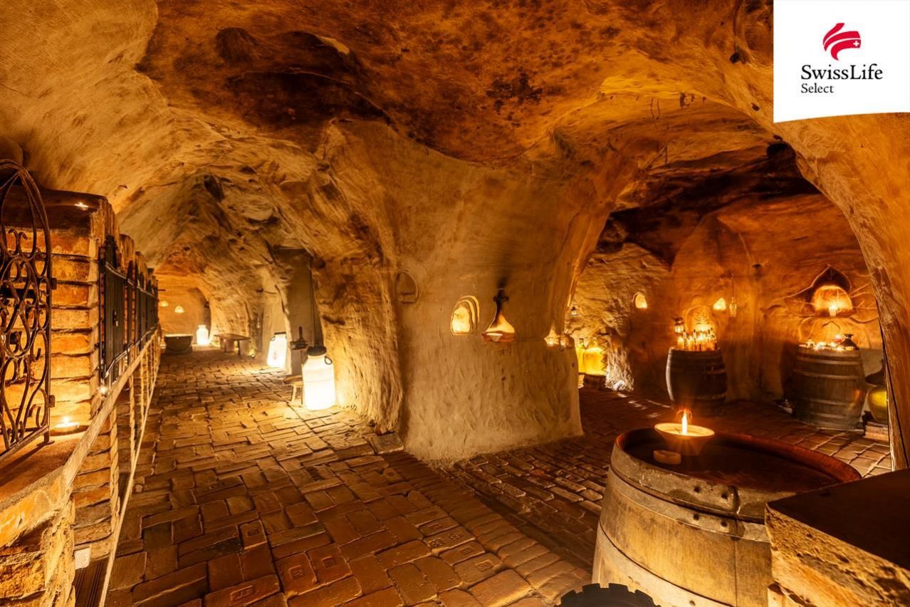 Základním pilířem nemovitosti je více než 400 let starý pískovcový vinný sklep s přibližně 100 metry chodeb. Stabilní mikroklima, historická hodnota a rozsah prostoru vám umožní pokračovat v pořádání degustací, vinařských akcí nebo zážitkových setkání případně celý koncept dále rozvíjet podle vlastních představ. Ve sklepě se stabilní teplotou je k dispozici také na komerční pronájem 25 uzamykatelných archivních boxů na víno s kapacitou více než 200 lahví.