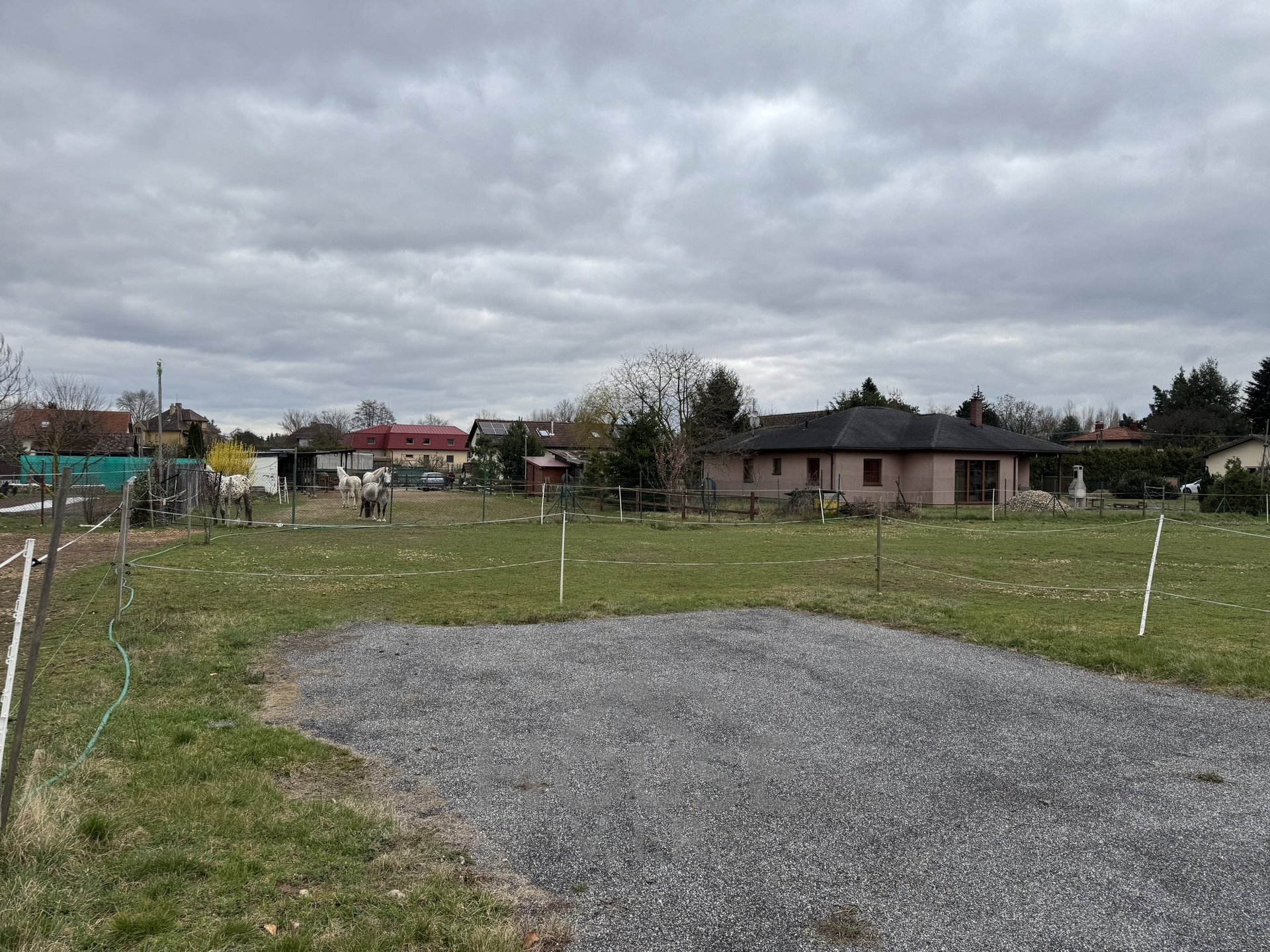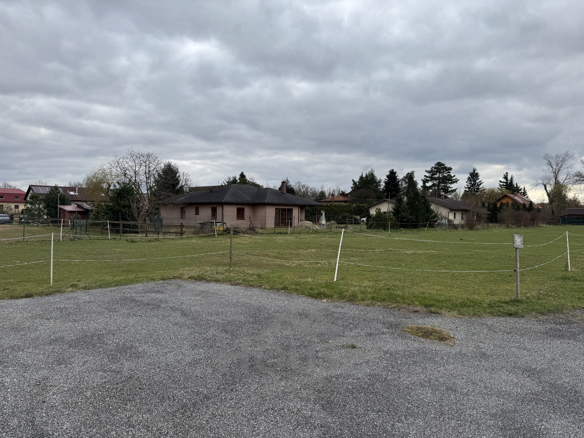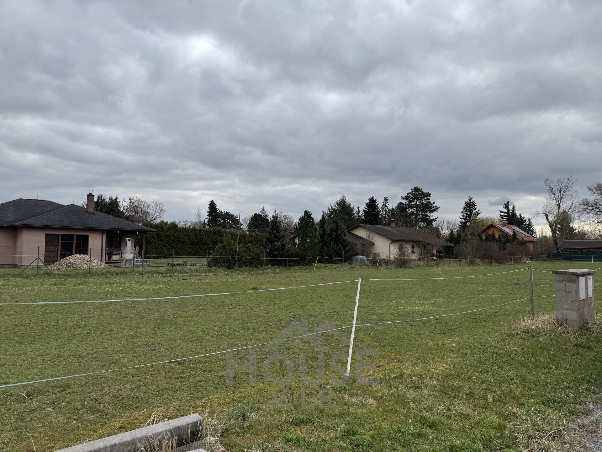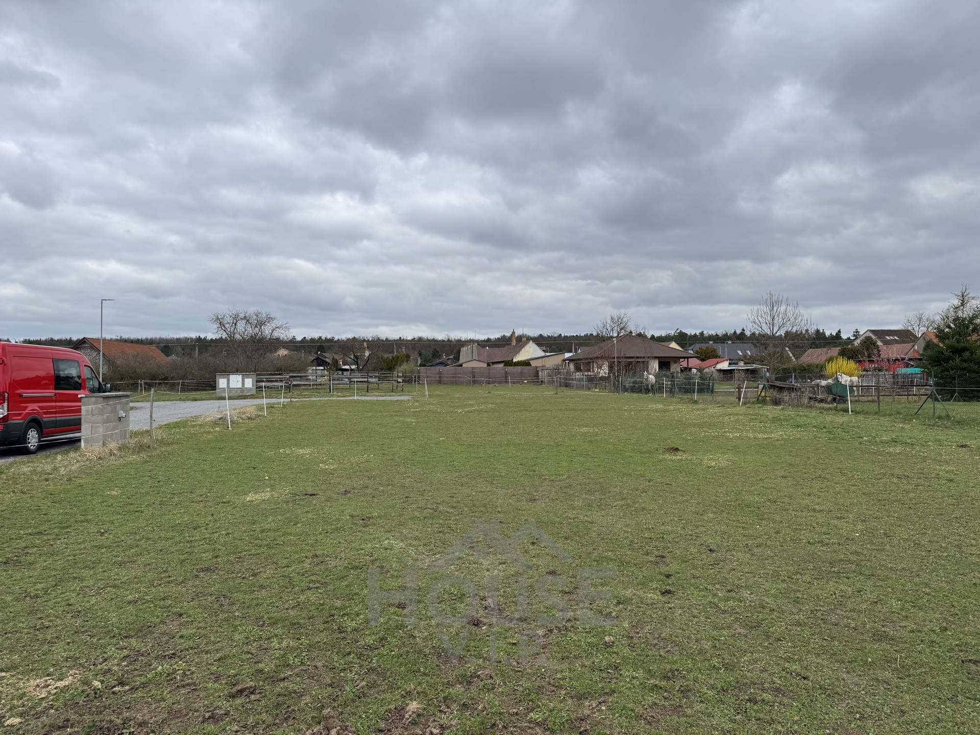 Na pozemku jsou již zavedeny inženýrské sítě – voda a elektřina, kanalizace je k dispozici na hranici pozemku. To vše výrazně zjednodušuje a urychluje proces budoucí výstavby.