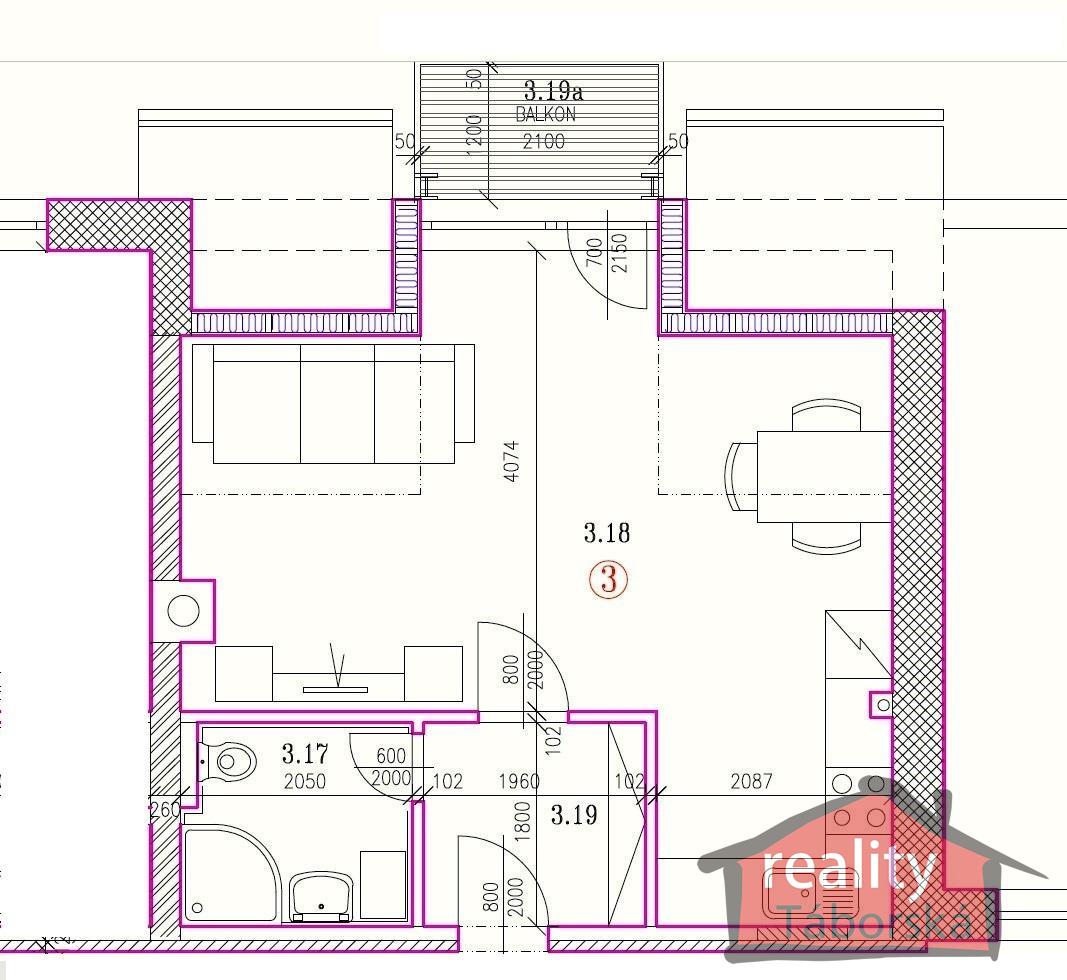 Byt č. 3 - 1+kk o výměře 38 m2 za cenu 4,771.648,- Kč. K bytu náleží jedno zamykatelné parkovací stání před domem..