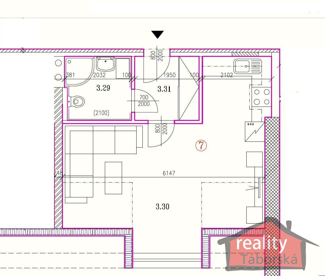 Byt č. 7 - 1+kk o výměře 38 m2 za cenu 4,429.152,- Kč. K bytu náleží jedno zamykatelné parkovací stání před domem..