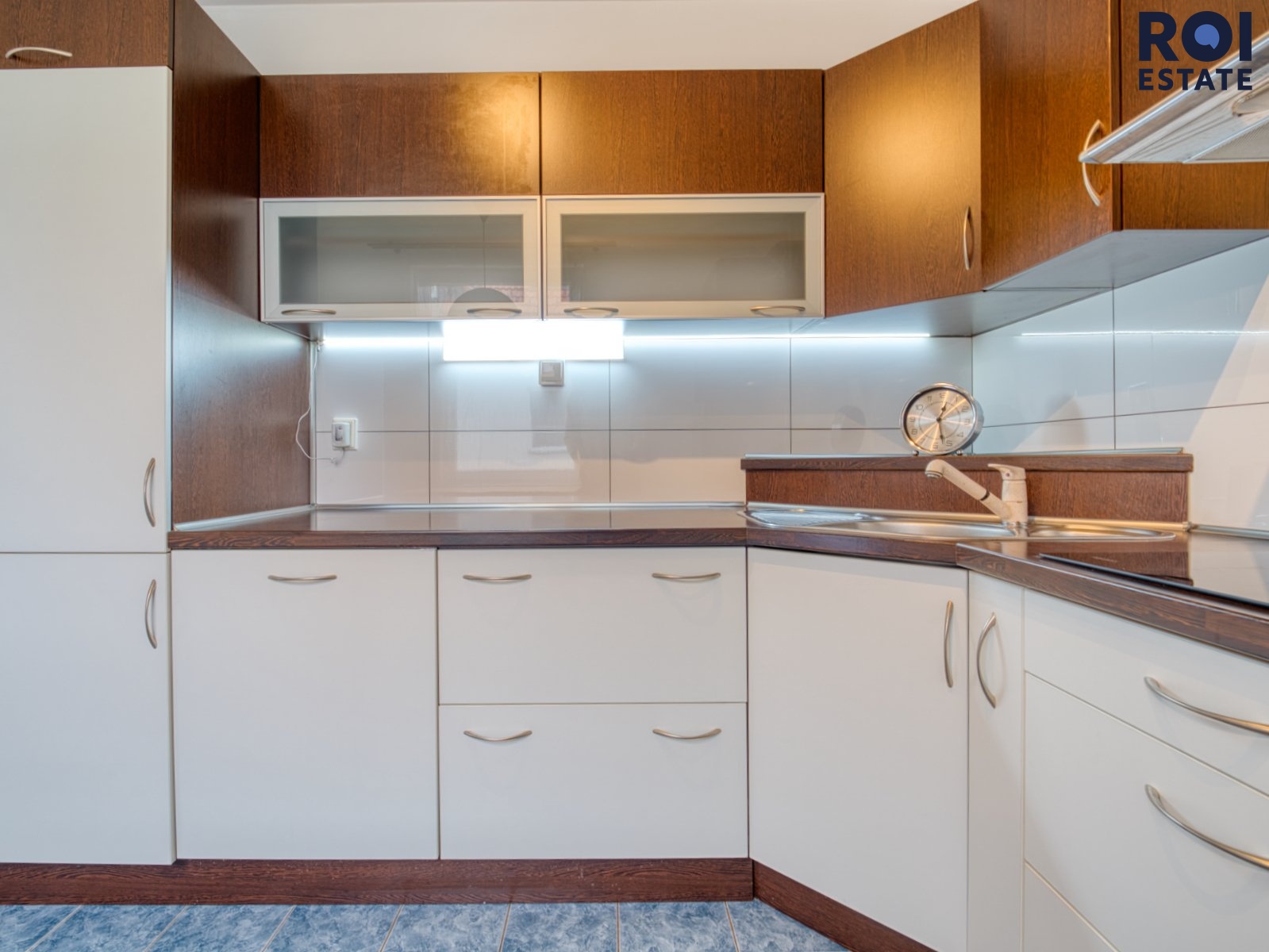 Vybavení: kuchyňská linka se spotřebiči (varná deska, trouba, myčka). Podlahy tvoří kombinace plovoucí podlahy a dlažby. K dispozici jsou vestavné skříně poskytující dostatek úložného prostoru.