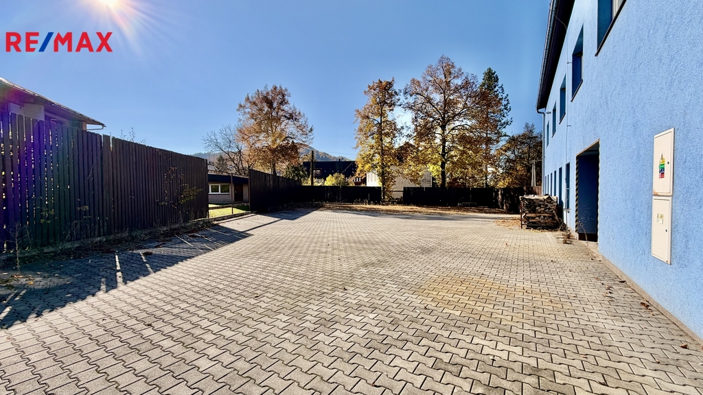 Součástí pronájmu jsou skladovací prostory v "garáži" o výměře 214 m2 a manipulační plocha v uzavřeném dvoře, výměra 1000 m2.
