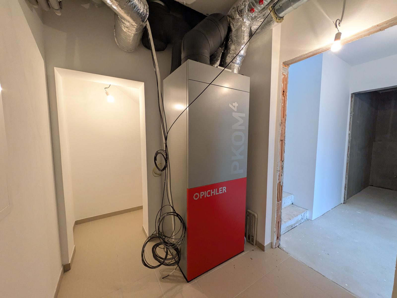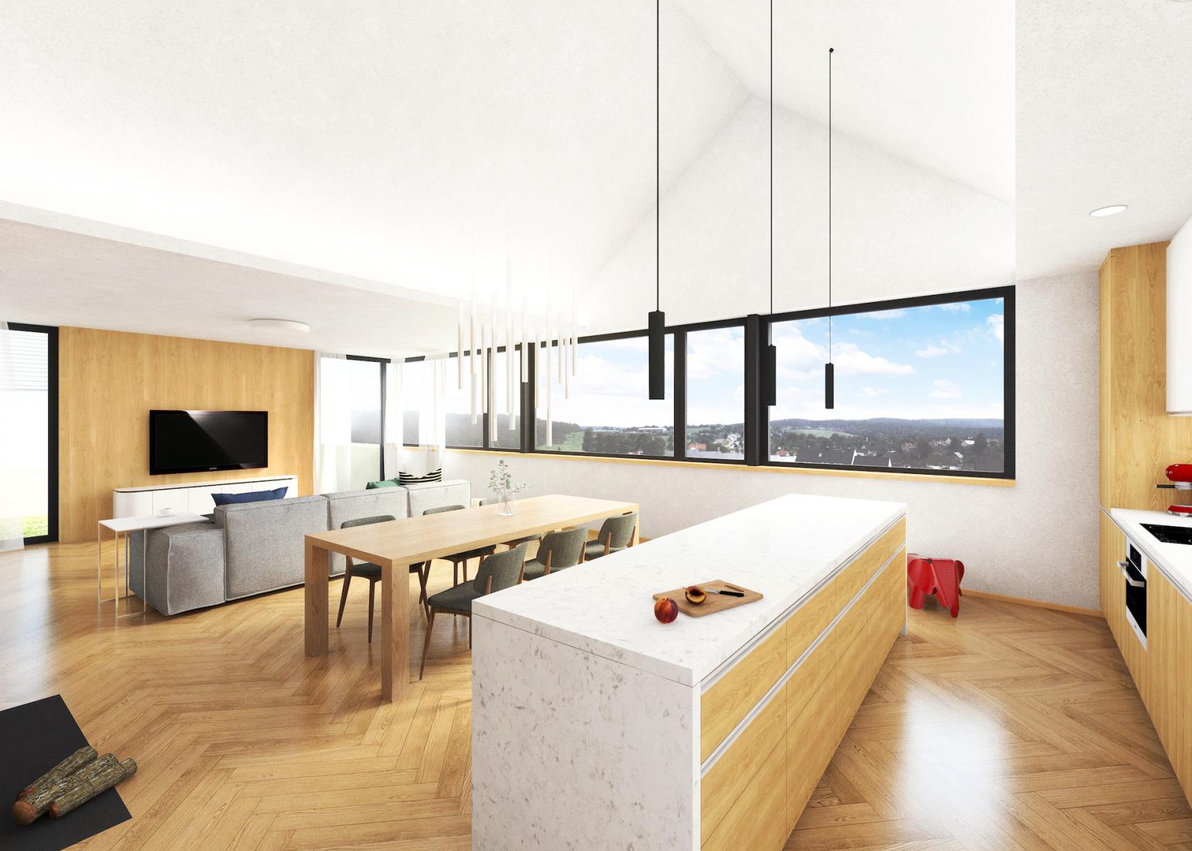 Technický popis: základové pasy + ŽB základová deska, svislé konstrukce 1.PP btb tvarovky, 1.NP keramické tvarovky, strop 1.PP ŽB monolitická deska, strop 1.NP řešen jako součást konstrukce dřevěného krovu, střecha sedlová s keramickou krytinou, omítaná fasáda s částečně dřevěným obkladem ze sibiřského modřínu, provedená v zateplovacím systému ETICS, výplně otvorů hliníkové, velkoplošná skla, předokenní žaluzie. Primárním zdrojem tepla je rekuperační jednotka s integrovaným tepelným čerpadlem s výkonem až 1,3 kW, sekundárním zdrojem tepla je ve všech místnostech elektrické podlahové topení, interiérové schodiště zděné Ytong, dešťová voda svedena do akumulační jímky s bezpečnostním přepadem do vsakovacích bloků. V ceně domu je zahrnuta chytrá domácnost SOMFY, díky které bude možné ovládat žaluzie, garážová vrata, regulaci topení a videotelefon, zabezpečovací systém s napojením dveřních magnetů a sensorů pohybu, venkovní kamery. V ložnici, dětských pokojích a obývacím prostoru budou integrovány klimatizační jednotky. Dům bude prodáván ve stupni dokončení and #34;White Walls and #34; (bez podlahových krytin, obkladů, zařizovacích předmětů, dveří).