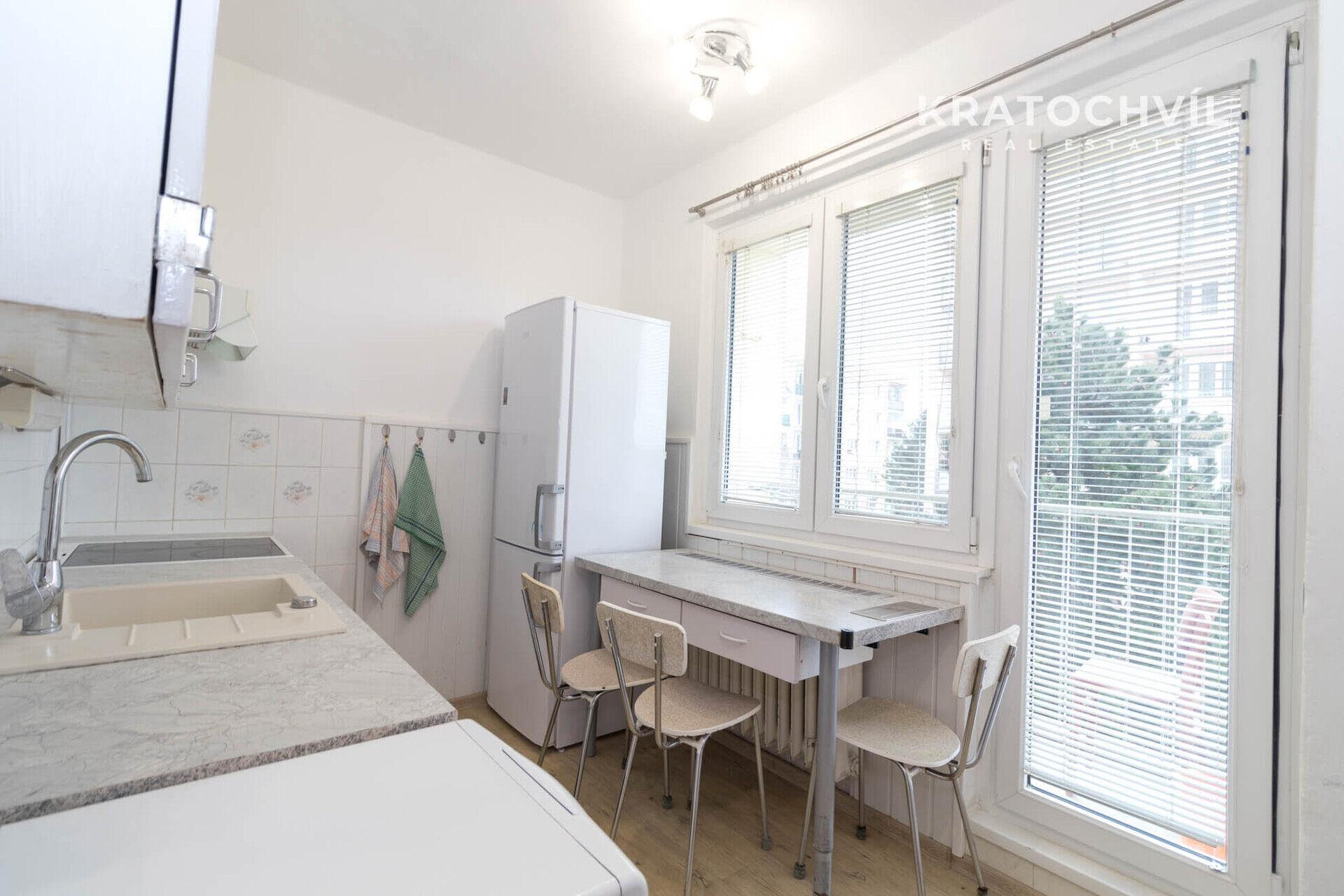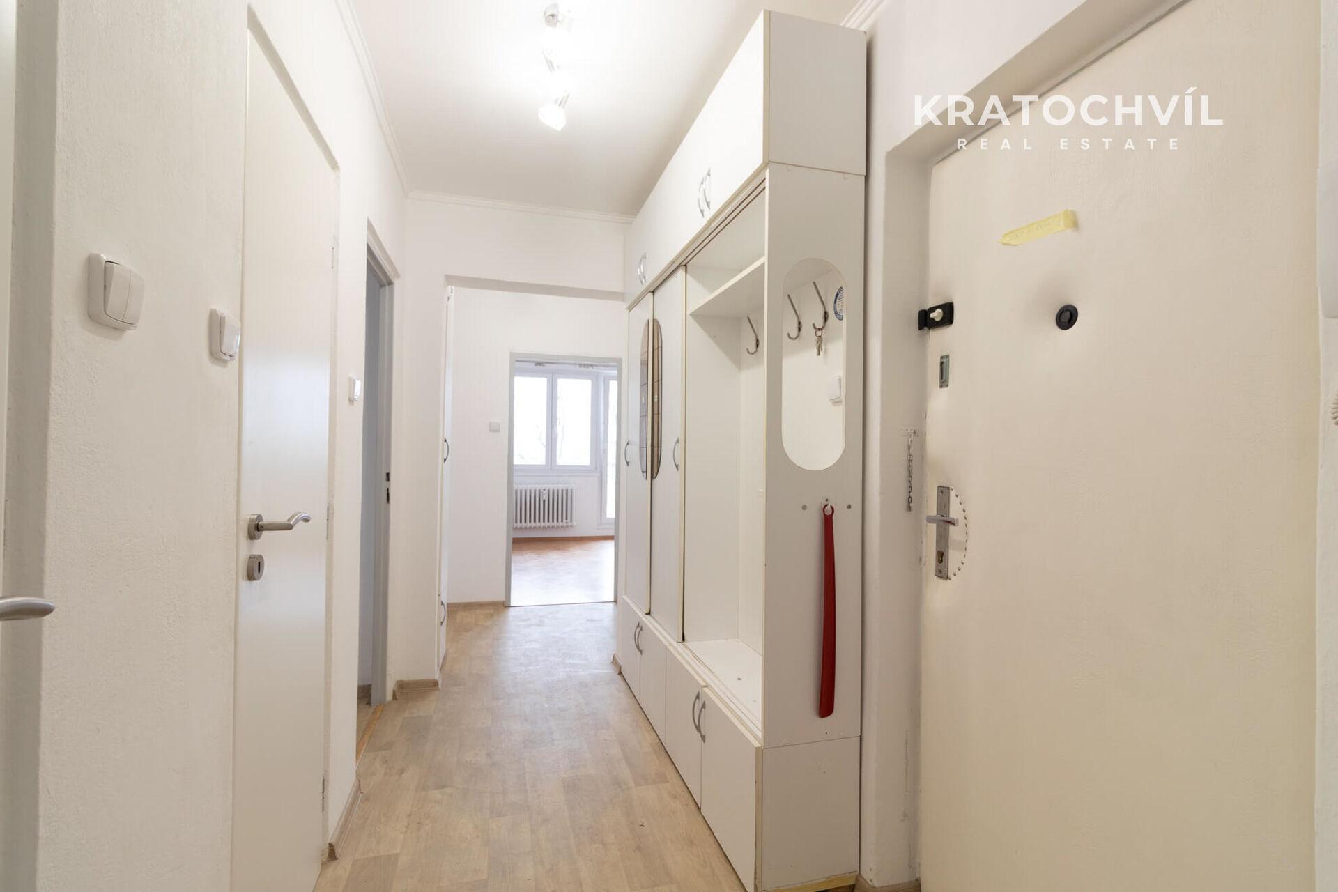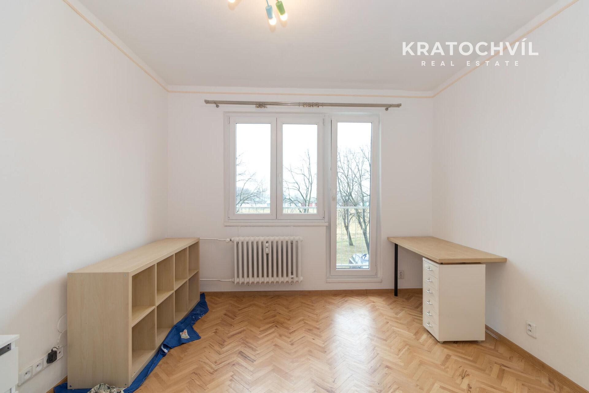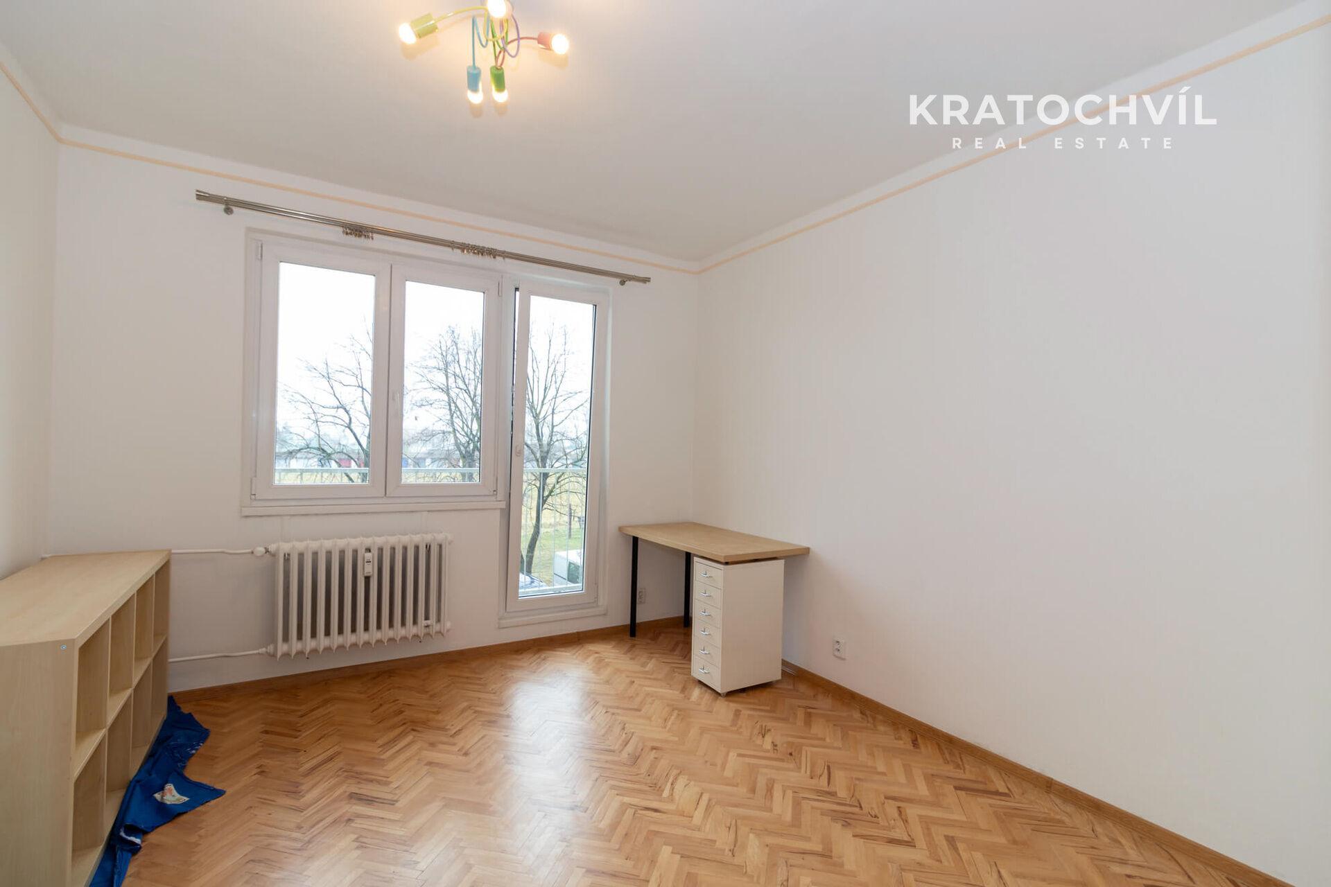 Pronájem bytu 3+1 + lodžie, podlahová plocha 70 m2, nacházející se v 1. patře panelového domu po rekonstrukci. Byt je po částečné rekonstrukci, část. zařízený, chodby je samostatný vstup do každého pokoje. V kuchyni je kuch.linka s lednicí, pračkou, jídelní stůl se židlemi. V obývacím pokoji je stůl s rohovou lavicí a rozkládací sofa. Jedna ložnice je nezařízená, ve druhé jsou menší komody. Každý pokoj má vstup na samostatnou lodžii s výhledem do zeleně. V koupelně je vana se zástěnou a umyvadlo. Dále je v bytě komora jako úložný prostor s regály. K bytu dále patří sklepní komora v suterénu domu a je k dispozici menší kolárna. V obci je částečná občanská vybavenost, spojení MHD na metro C Kobylisy cca 20 min.