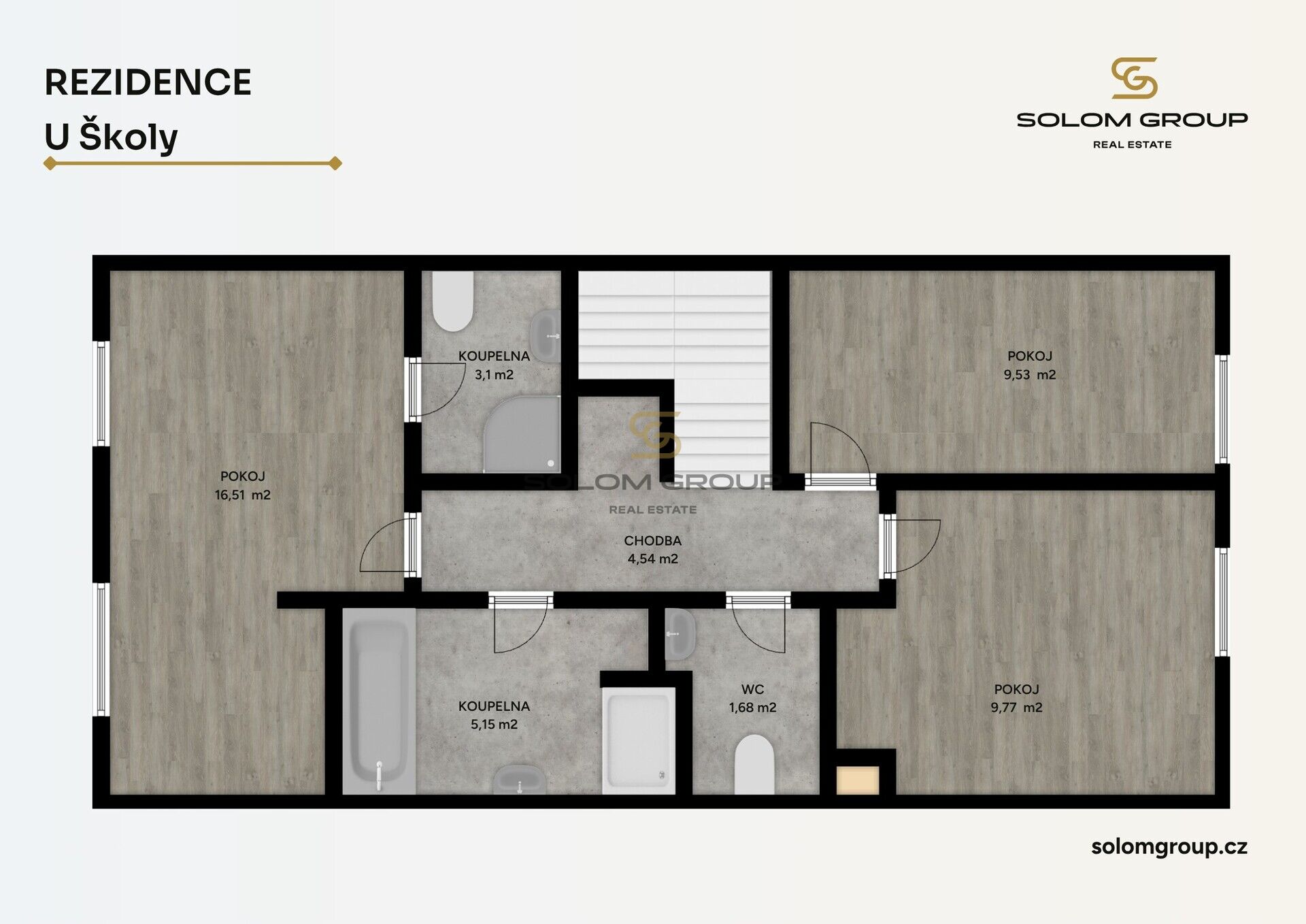 Prodej nového mezonetového bytu 4+kk o velikosti 104 m² + předzahrádka o výměře 27,6 m², který se nachází v 1. NP a 2.NP cihlové novostavby v Rezidenci U Školy, Odolena Voda (Budova A7)