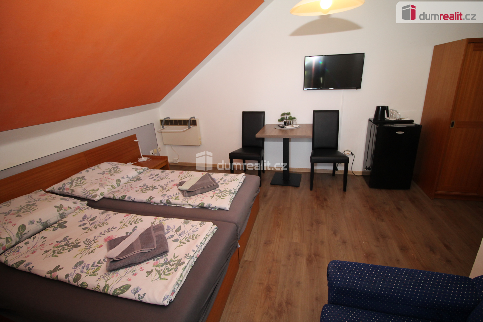 Naše společnost Vám zprostředkuje koupi zavedeného hotelu s restaurací přímo na sjezdu z dálnice D6 směr Odrava u čerpací stanice MOL, kde je dostatek parkování s velkým pozemkem 3880 m². Budova dle architektonického návrhu postavená před 25 lety je ve výborném stavu, je z červených pálených cihel a fasáda je zateplená. Elektroinstalace je již v mědi, jsou zde 3 fáze, 220 V, 380 V. Budova je připojena na veškeré inženýrské sítě včetně kanalizace, elektřiny, plynu i vodovodního řadu. Vytápění a ohřev teplé vody zajišťuje plynový kotel. V přízemí je restaurace s kapacitou pro 50 - 80 osob uvnitř, 50 osob na terase, dále je zde bar, vybavená kuchyně, sociální zařízení pro personál, pro hosty, dále sklad, výlevka. V přízemí je dále také samostatný byt 2+kk, který je přístupný ze zadní strany samostatným vchodem. V prvním patře je 8 dvoulůžkových pokojů každý s vlastní koupelnou se sprchou toaletou a umyvadlem, které jsou plně vybavené nábytkem, minilednicí, TV apod., nyní jsou pokoje dlouhodobě obsazené. Ve druhém patře je podkrovní prostor, který slouží jako sklad, dále je zde pokoj, který je možný využít na ubytování, v současnosti se nepoužívá. Objekt je podsklepený, je zde technické zázemí a velká suchá místnost, cca 50 m², která se dá samostatně pronajímat, nyní také slouží jako sklad (opravovaly se zde kola). Ze zadní části budovy je únikové schodiště. Taktéž je v zadní části domu samostatná terasa, další parkoviště. Rozlehlý pozemek nabízí možnost variabilního vybudování prostoru pro parkování. Parkování je také možné na benzínce, u objektu je další velké parkoviště, které je možné si pronajímat. Místo je svou polohou ideální pro vybudování funkčního dlouhodobého podnikání. Cena zahrnuje provizi RK a právní servis. Ev. číslo: 656091.