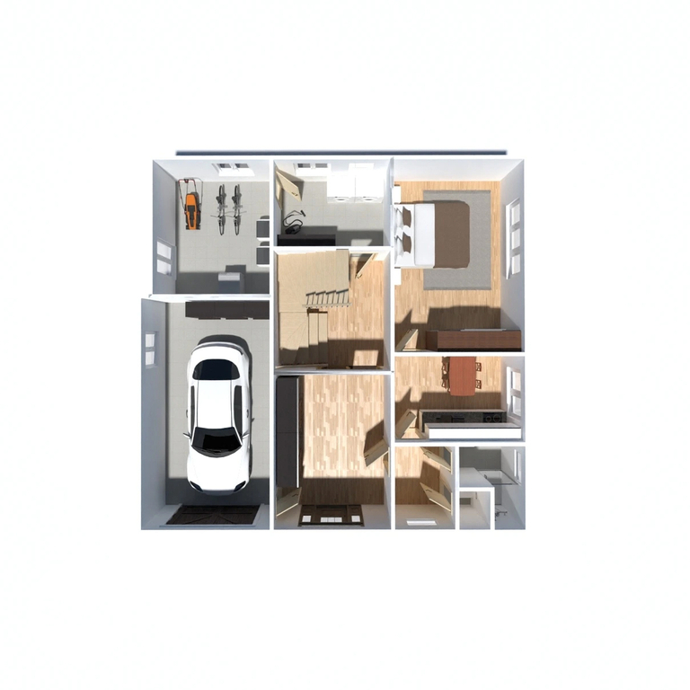 Samostatné podlaží může sloužit jako plnohodnotné bydlení pro rodiče, dospívající dítě nebo jako kancelář či zázemí firmy.