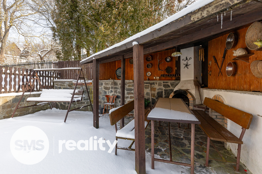 V 2. nadzemním podlaží se nachází bytová jednotka o dispozici 4+1. Prostorný obývací pokoj s přímým vstupem na balkón je vybaven klimatizační jednotkou. Z obývacího prostoru se přes jídelnu dostaneme do kuchyně se spižírnou. Z chodby je přímý vstup do ložnice, dvou dětských pokojů, koupelny s vanou a odděleným WC. Dům je v původním stavu, což dává možnost přizpůsobit si jej přesně podle potřeb bydlení. Střecha prošla před čtyřmi lety revitalizací. Součástí prodeje je hospodářská budova vhodná jako dílna (automechanik, řemeslník) a zahradní altán s krbem.