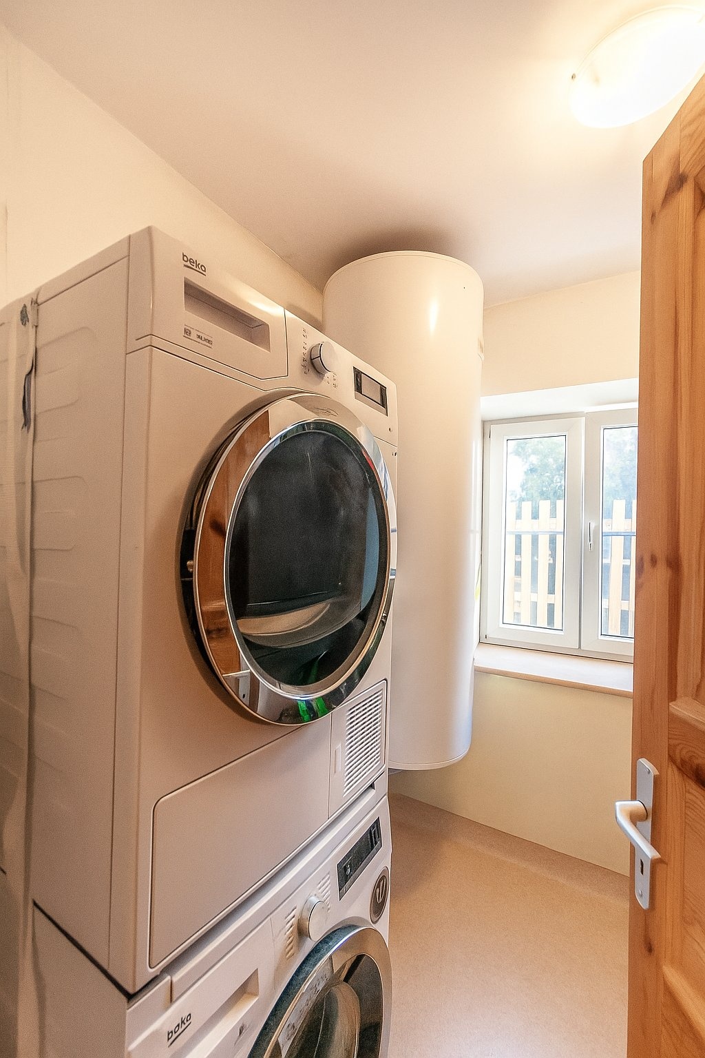 Srdcem domu je účinné vytápění na dřevo kotlem značky ATMOS. Je zde i plynový přívod, což umožňuje úsporné a ekologické vytápění s náklady kolem 3000 Kč při sezonním období.