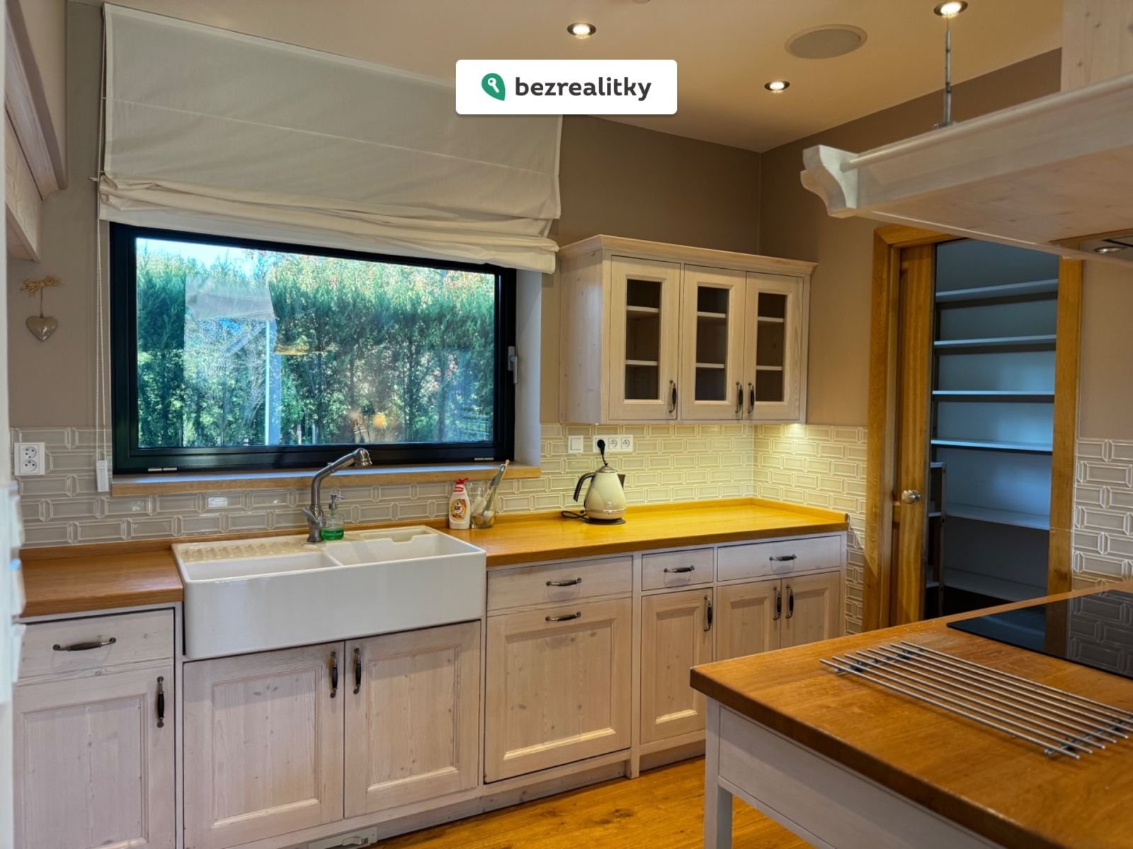 Interiér s masivním nábytkem na míru inspirovaný středomořským stylem je profesionálně navržen do nejmenších detailů, což vytváří útulnou atmosféru domova.