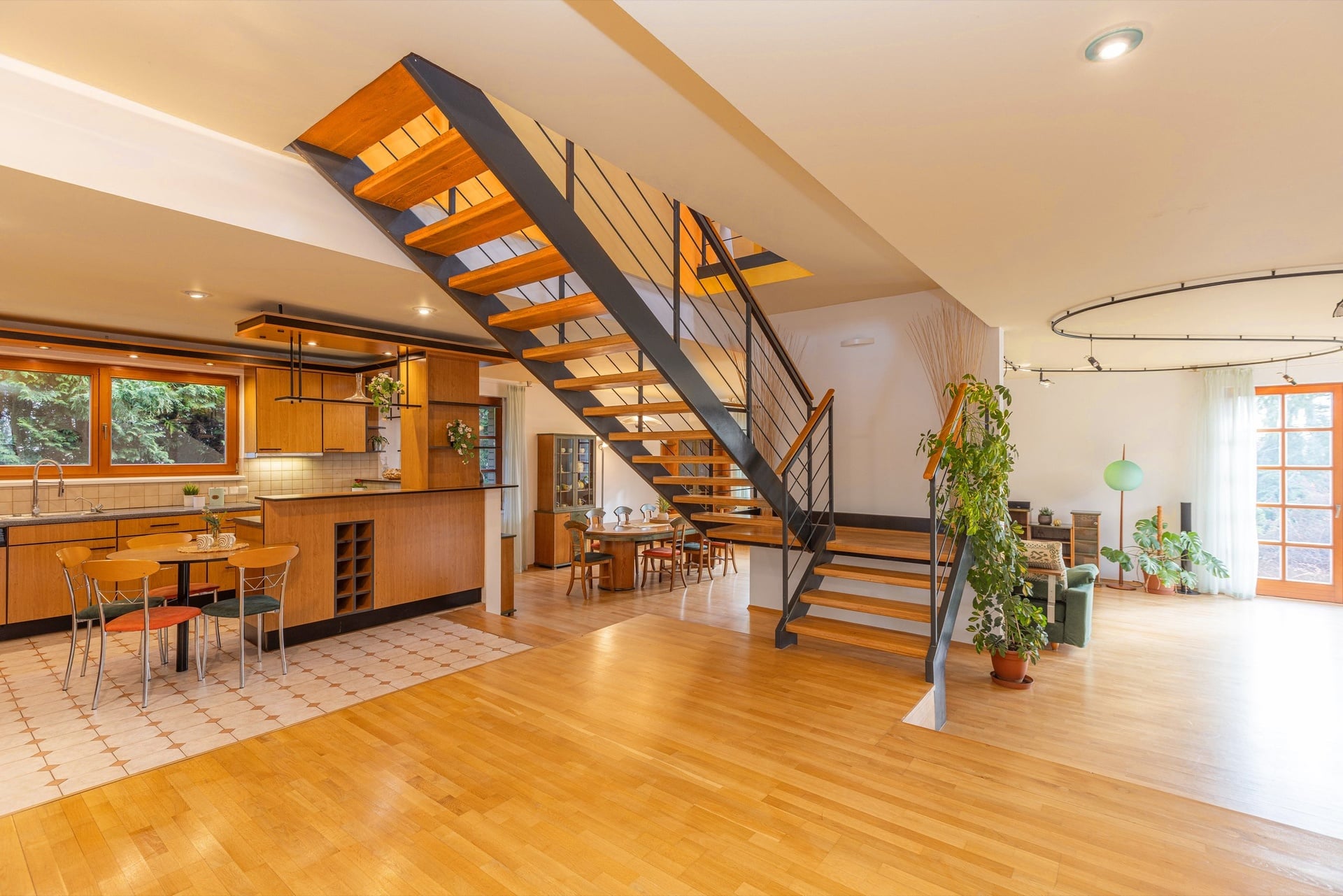 Milovníky vzrostlých zahrad potěší pozemek, který není žádné holátko o pár metrech. Stromy, přímé sousedství lesa, skoro 1.600 m2 a spousta místa na obrovskou terasu (přes 60 m2), která nabídne perfektní zázemí pro vaše rodinné sešlosti. Za pozemkem už není žádný další soused, pouze zeleň, a možný je také přístup zezadu. Napsat sem všechno jednoduše nejde. Víc si o tomto výjimečném domě můžete přečíst na samostatném webu, který vám rád na vyžádání zašlu. Na viděnou na prohlídce.