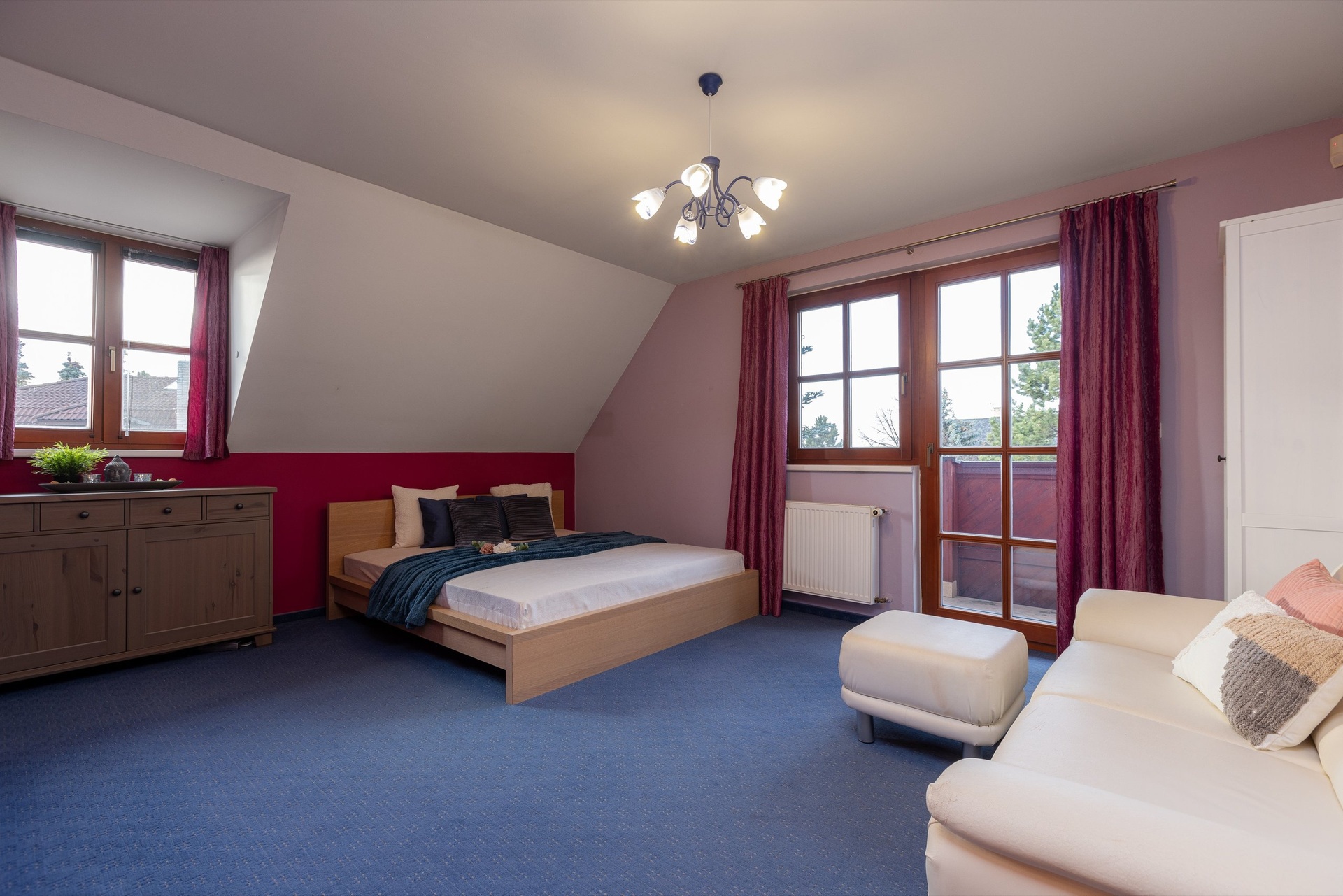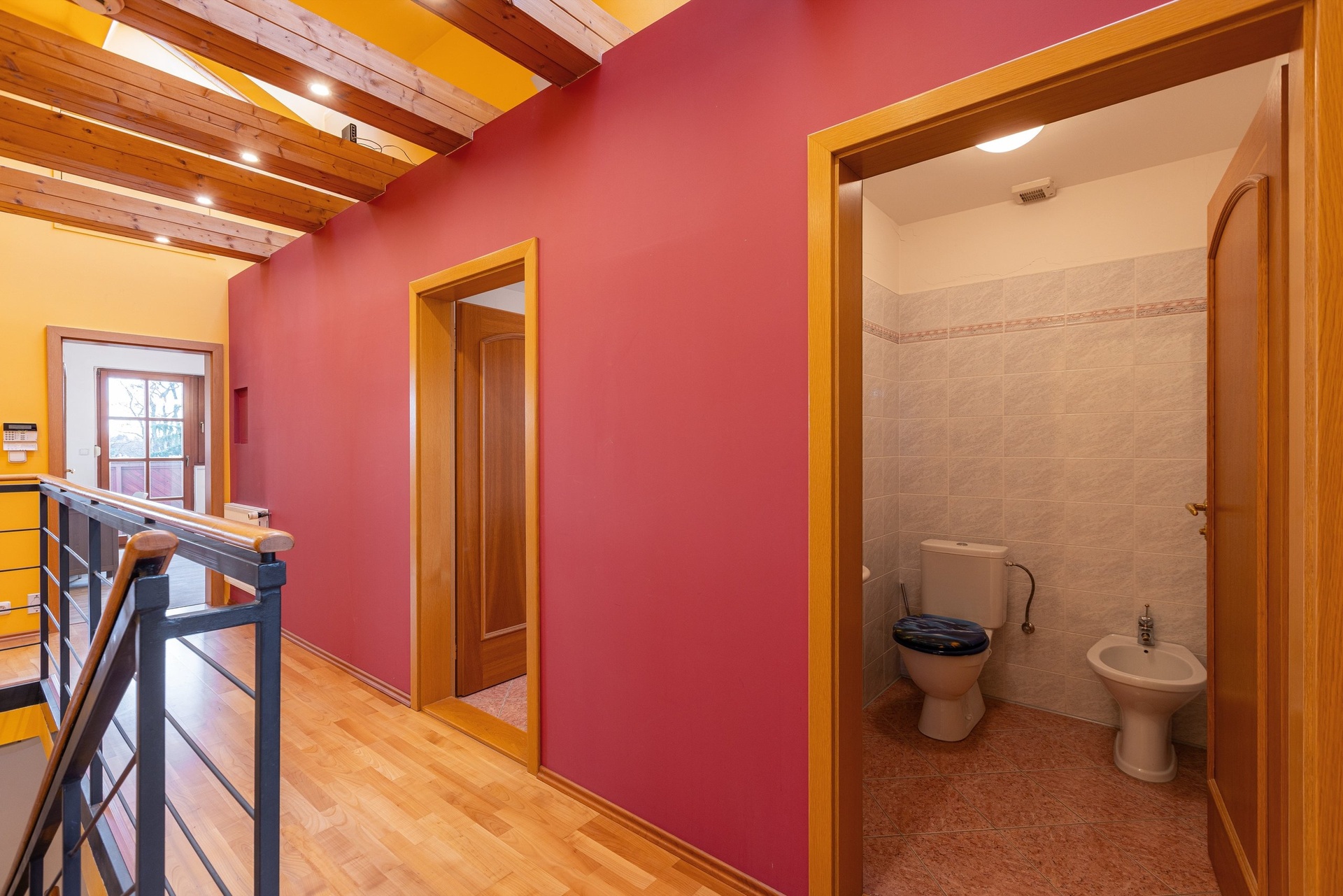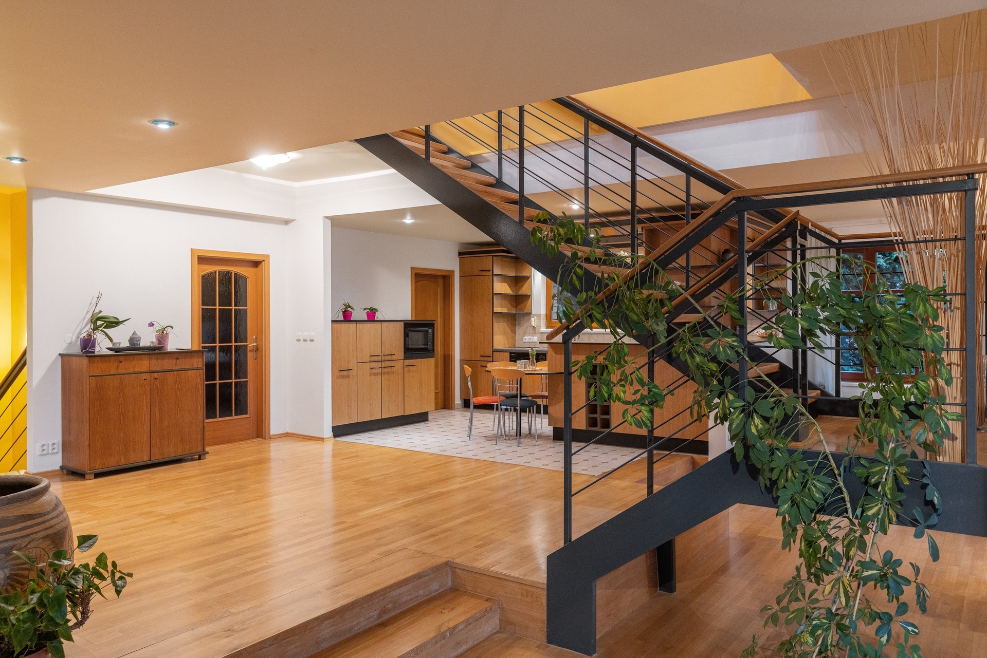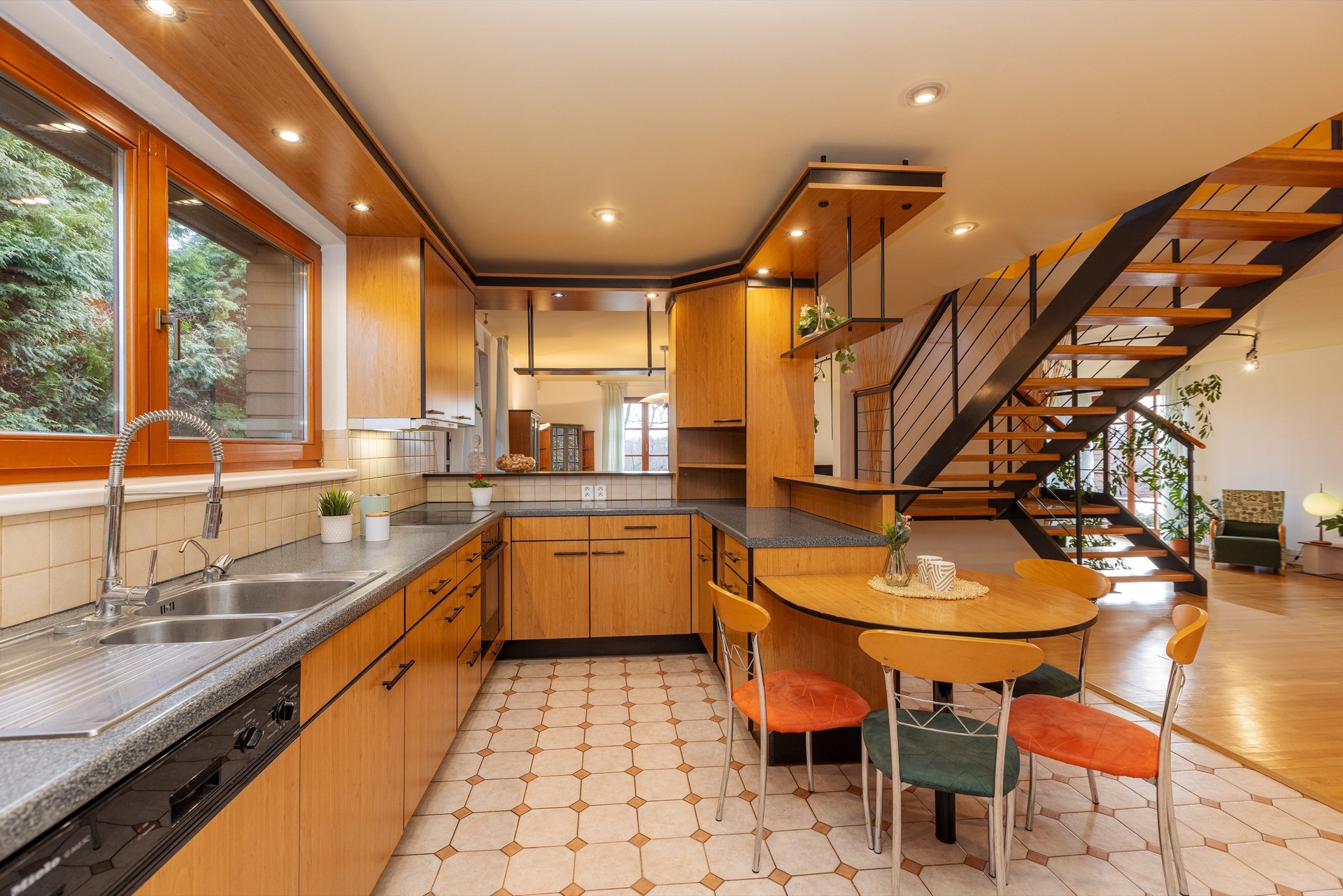 Jeho architektura byla inspirována rakouskými a americkými vlivy, kteří pozorní odhalí i v některých dalších detailech, jako je například shoz na prádlo. Stavba, která z ulice dokonale klame tělem, je opravdu rozlehlá. Včetně garáže ostřeluje metu 450 m2 a nabízí to, co u nových domů naleznete jenom stěží - plnohodnotný suterén, který má i svou obytnou část. Dvě plnohodnotná obytná podlaží, suterén, půda, garáž o ploše skoro 40 m2 a velké ložnice. Perfektní a okamžitě funkční základ pro vaše náročné potřeby, který si v průběhu let můžete doladit přesně podle sebe.