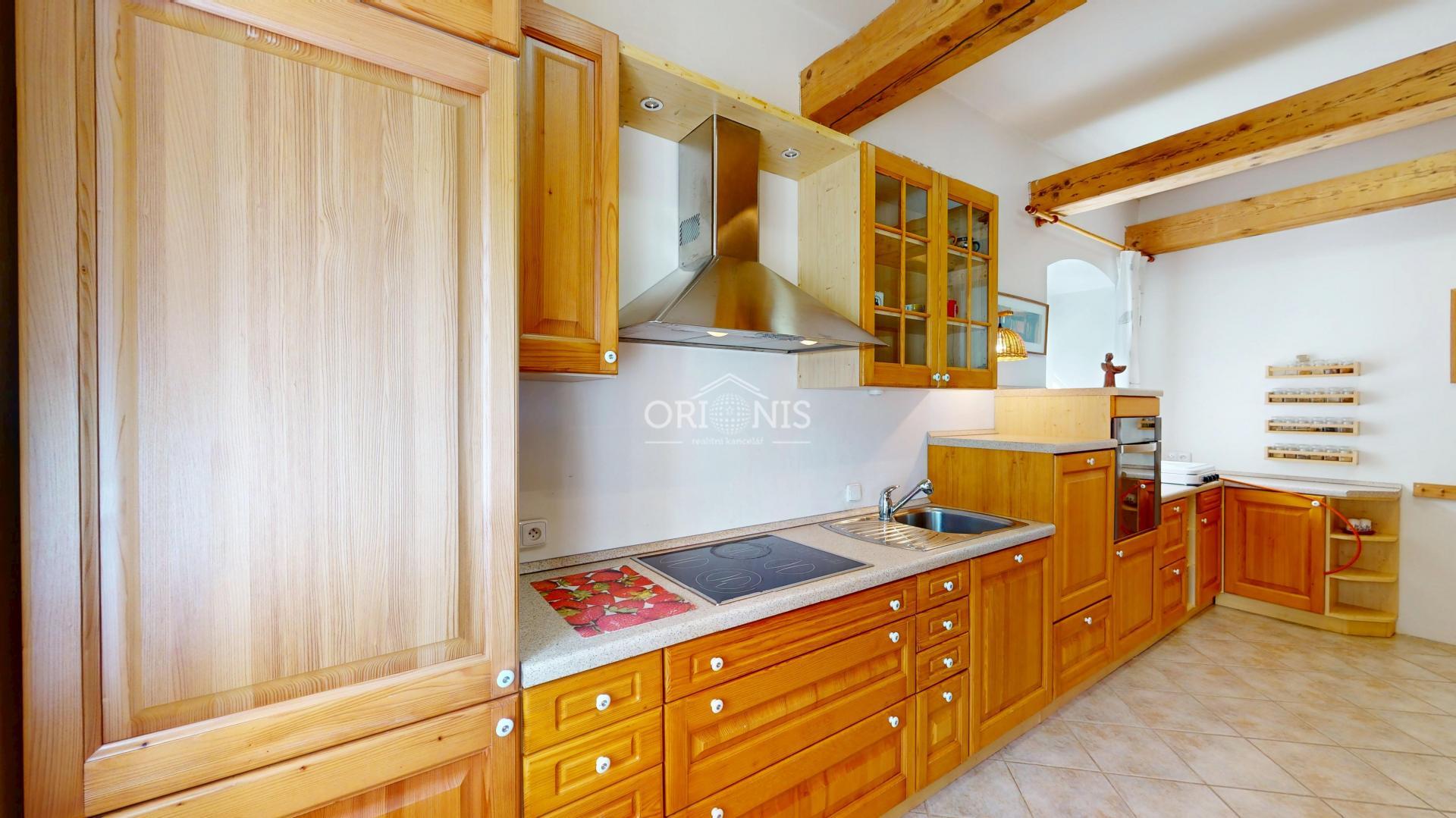 Prostorný byt 3+1 (kuchyň s jídelnou s krbovými kamny, obývací pokoj, ložnice), koupelna, dílna, technické zázemí, šatna, komora, výtah,