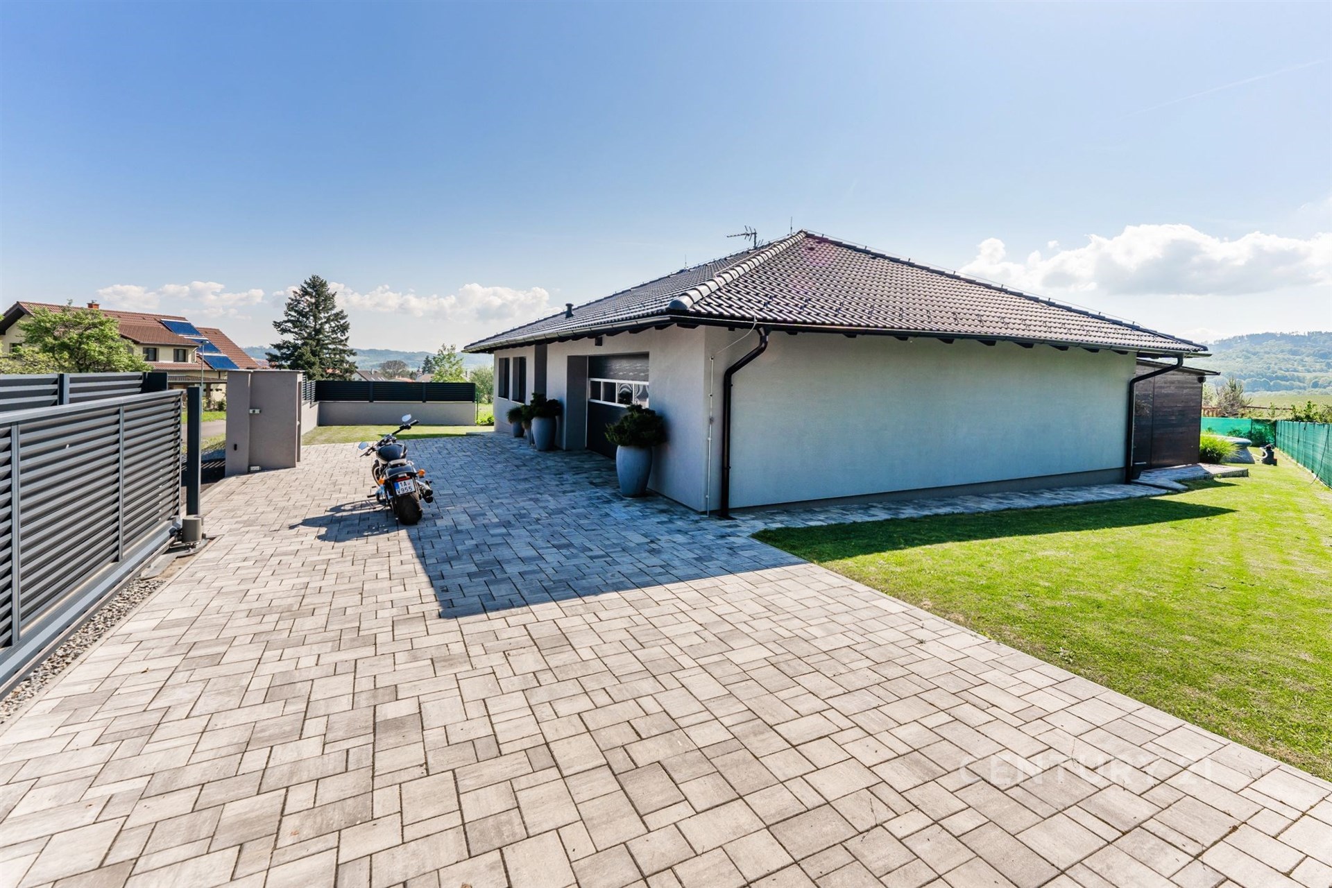 Moderní rodinný dům s rozlehlou pergolou a dvojgaráží, Olbramovice